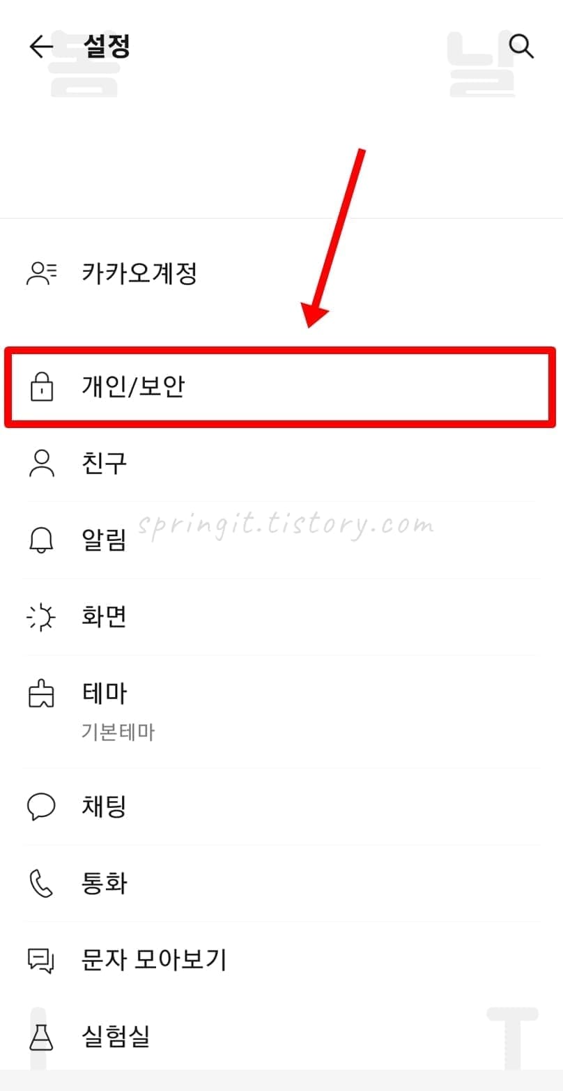 4. 개인/보안을 클릭합니다.