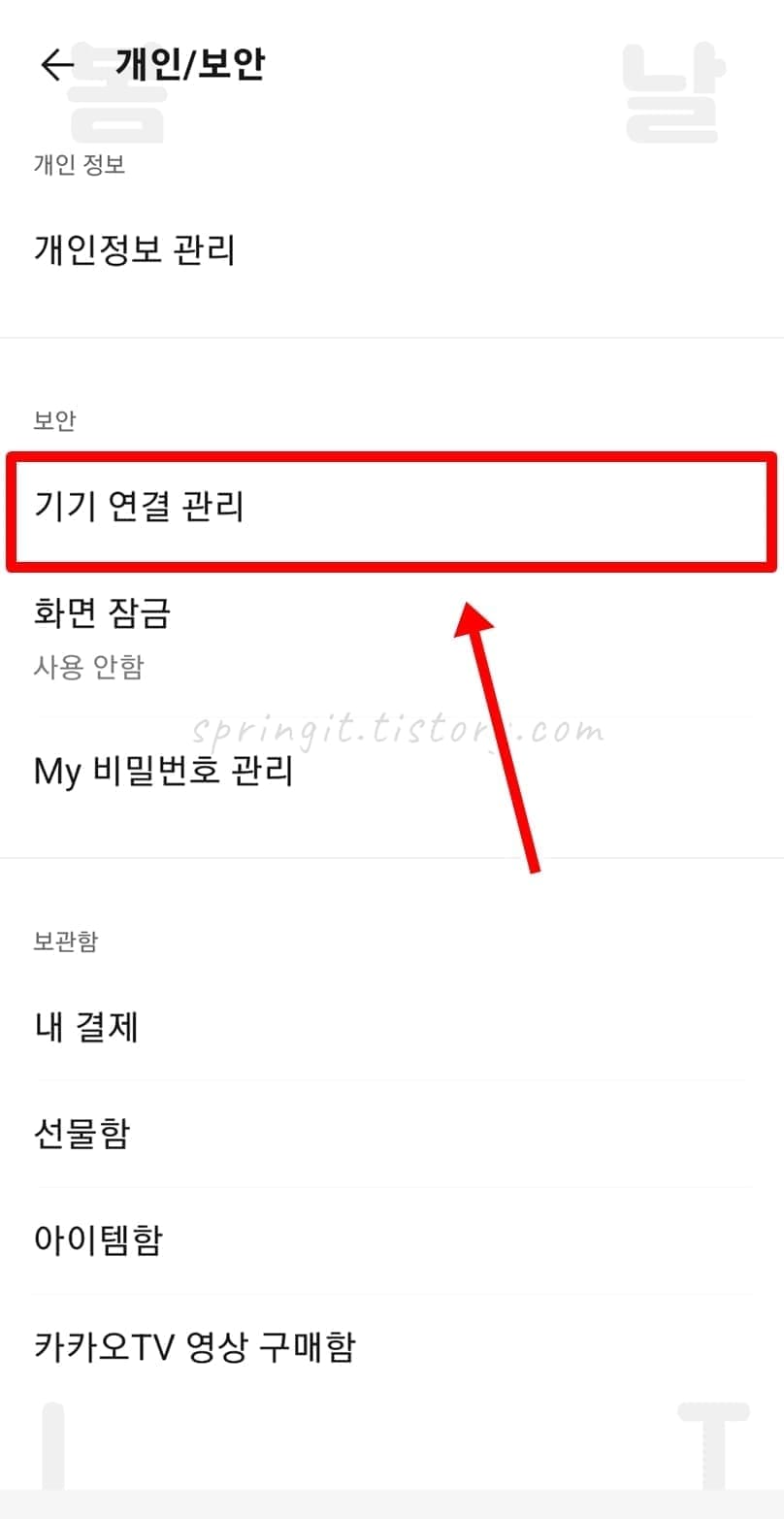 5. 기기 연결 관리를 누릅니다.