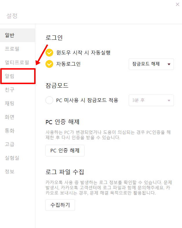 카카오톡 PC 로그인 알림 끄는 방법