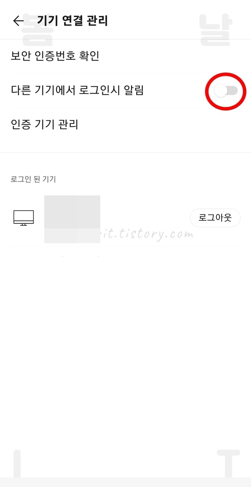 6. 다른 기기에서 로그인시 알림을 비활성화합니다.