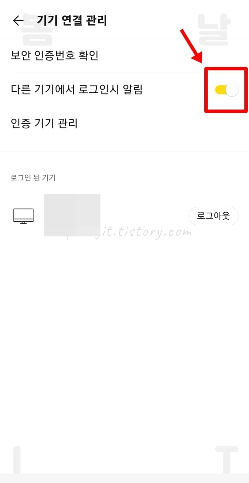 6. 다른 기기에서 로그인시 알림을 비활성화합니다.