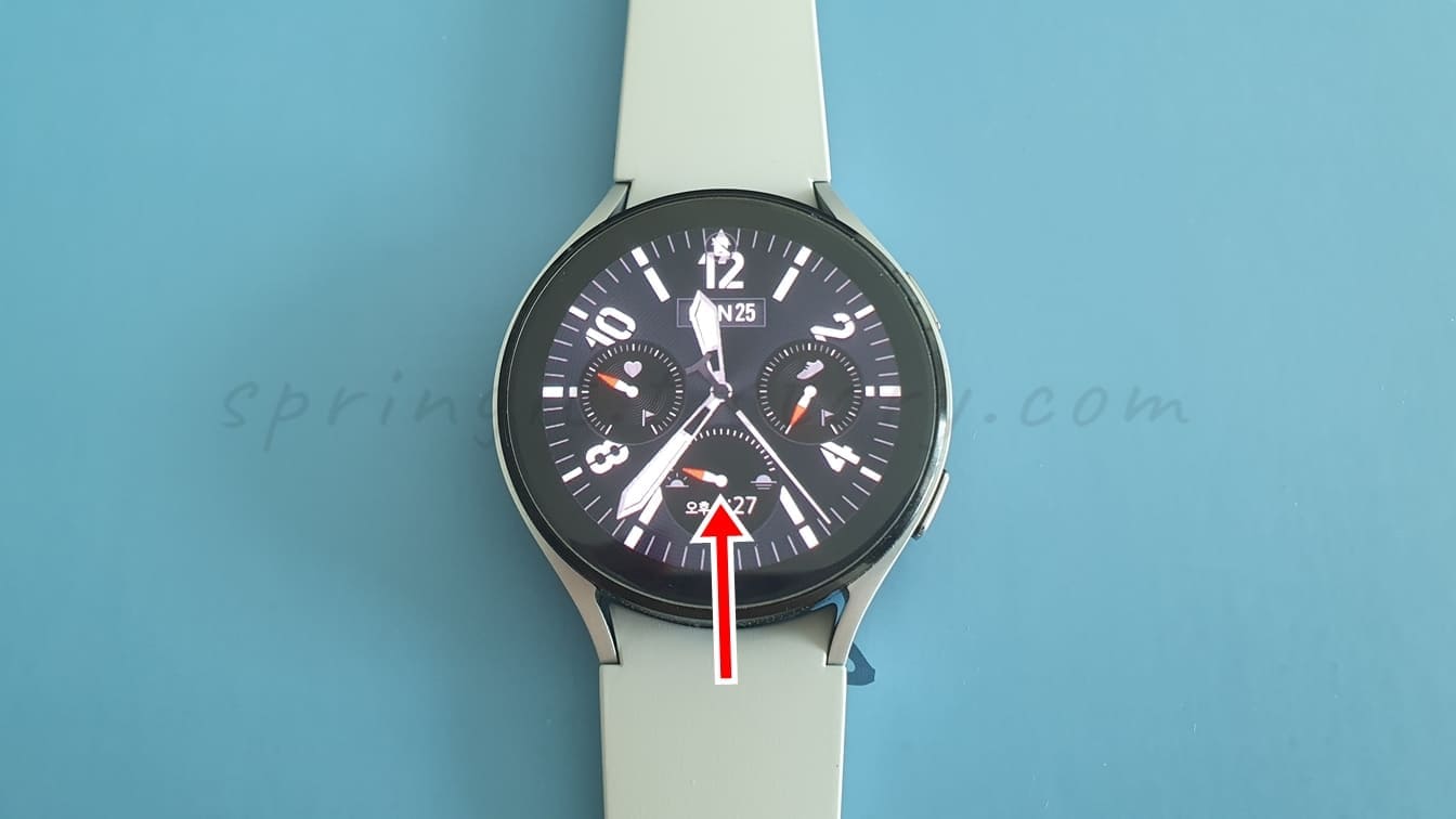 8. 스마트워치 홈화면을 아래에서 위방향으로 끌어올립니다.