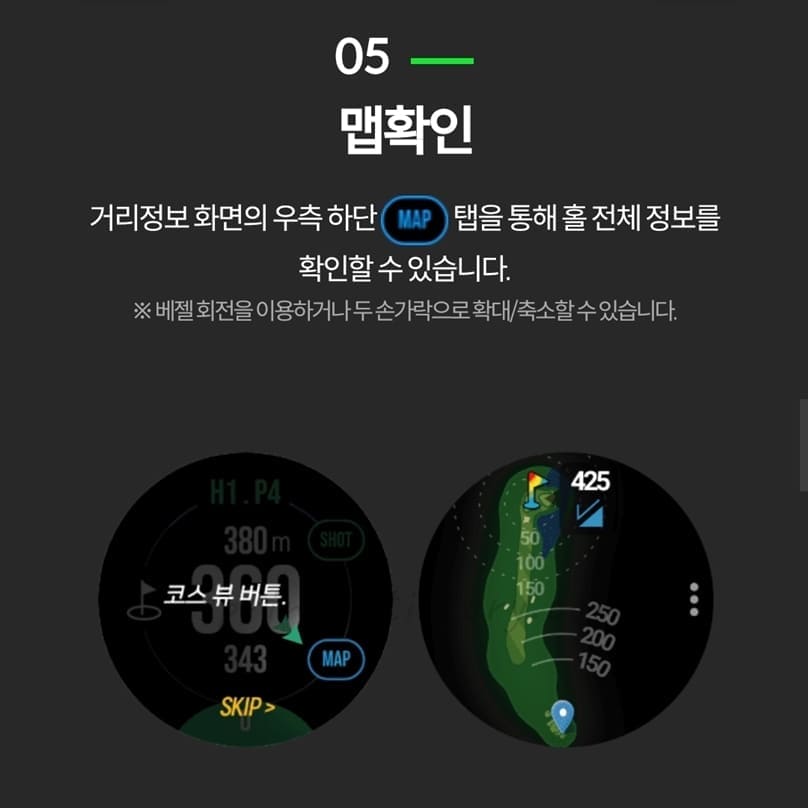 ※ 라운드 설정 > 맵 타입 탭을 통해서 이용하고자하는 코스 뷰 선택해서 사용