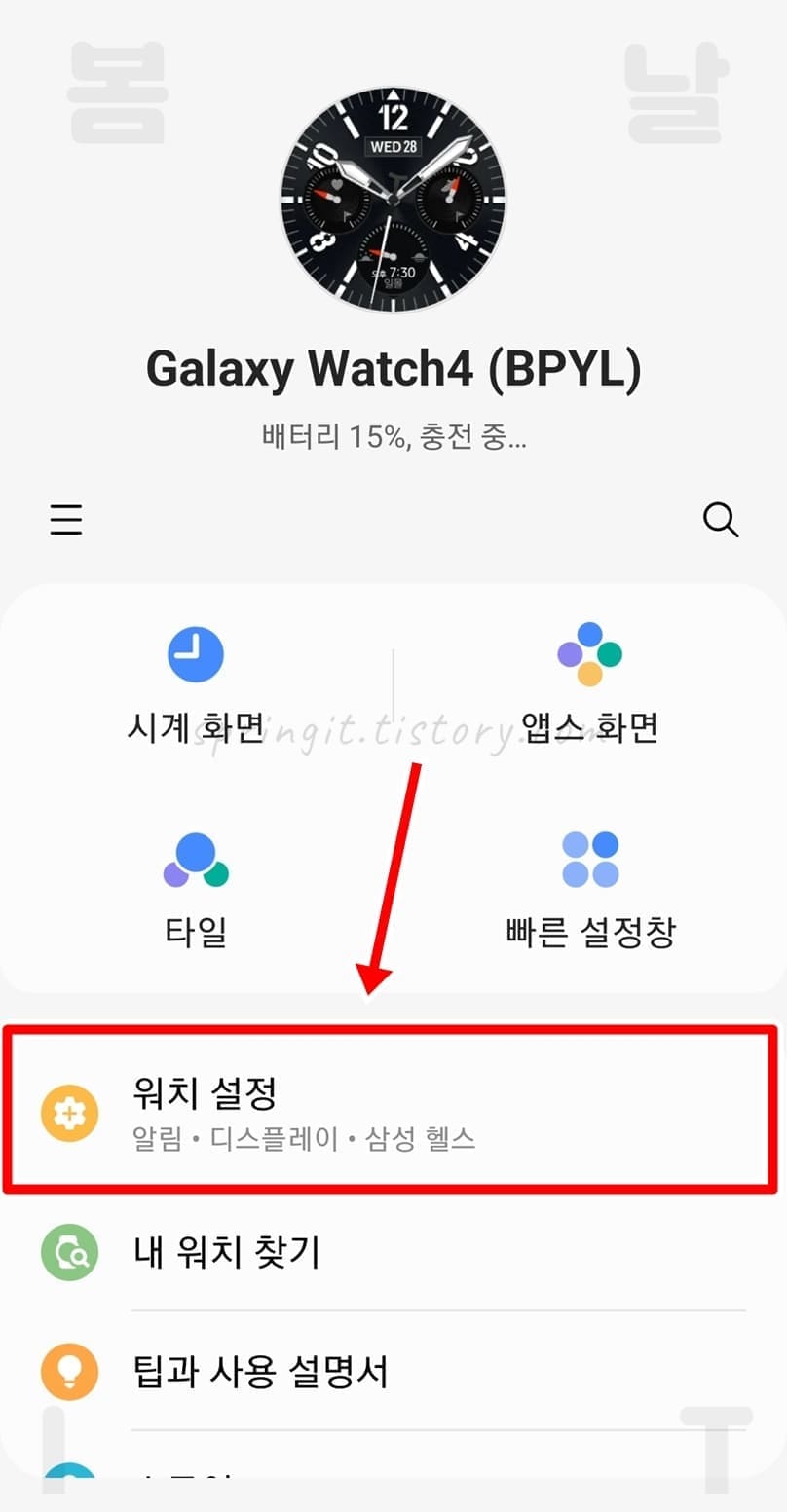 2. 워치 설정을 클릭합니다.