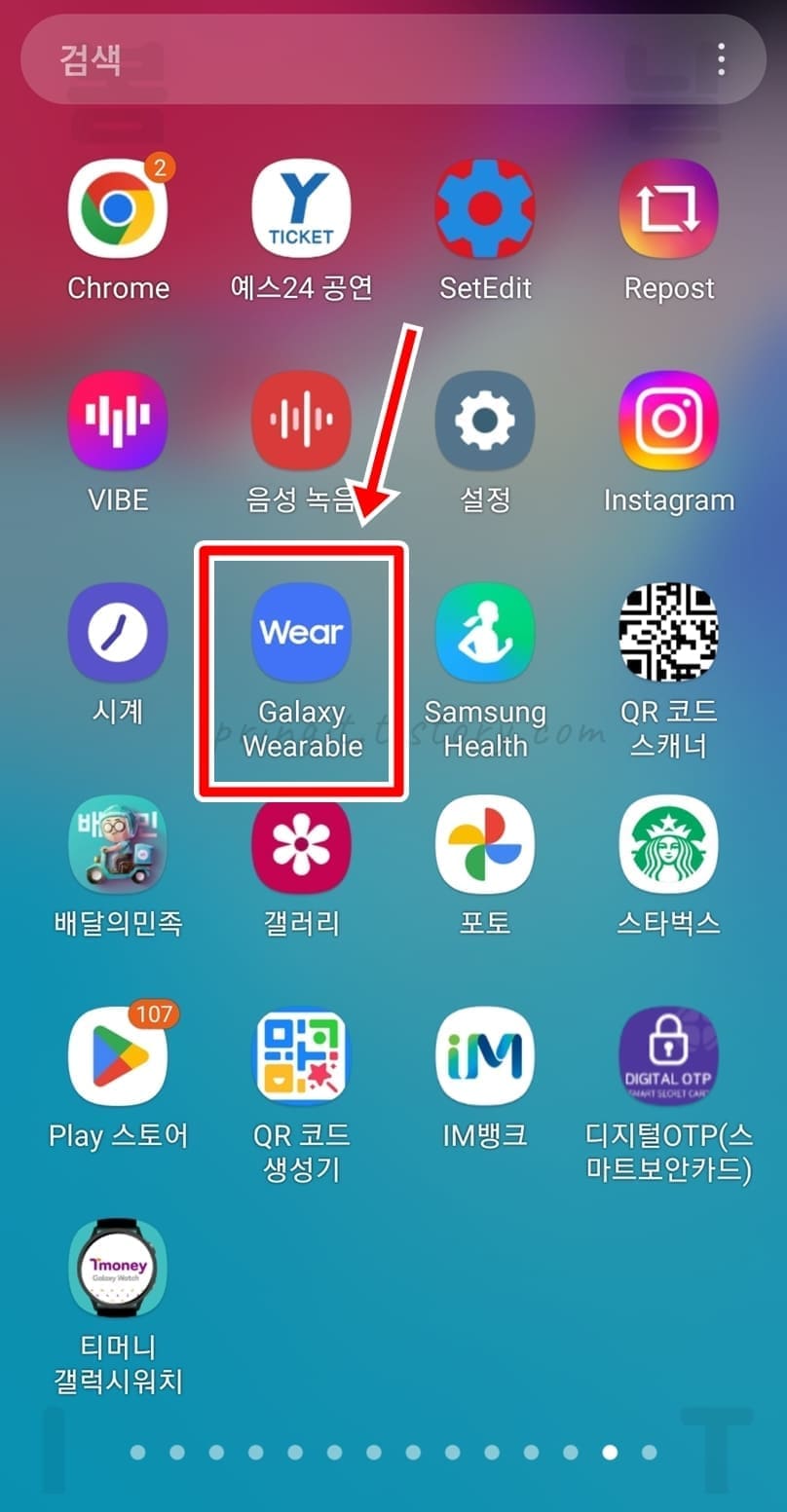 1. 스마트폰에서 Galaxy Wearable 앱을 실행합니다.
