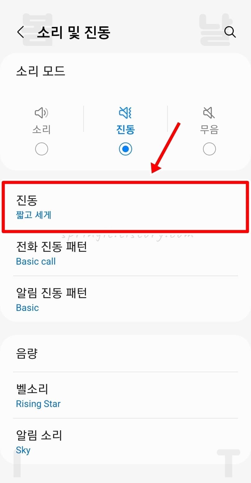 3. 소리 및 진동을 누릅니다.