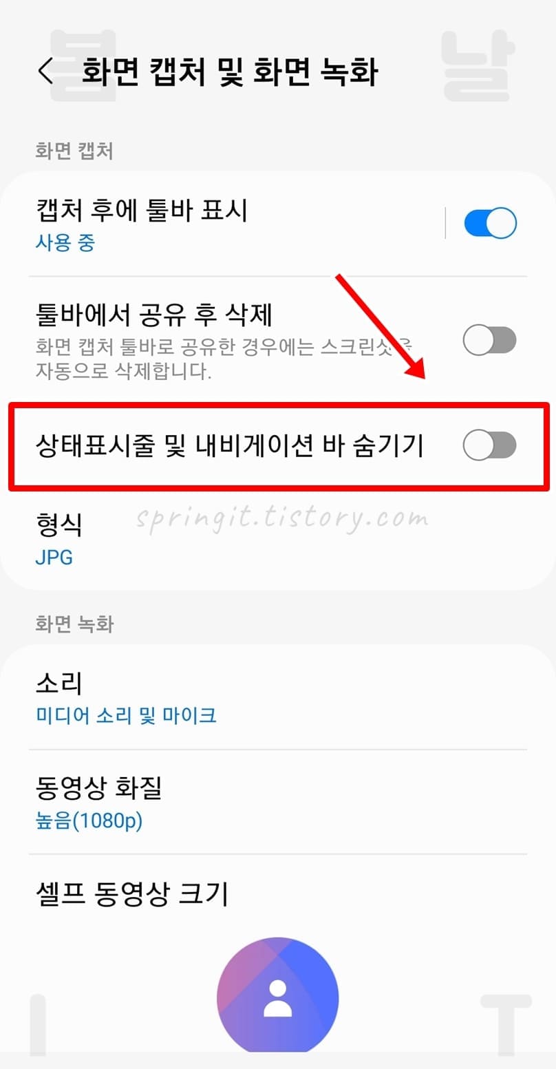 갤럭시 스크린샷 캡쳐시 상단바 안나오게 숨기기