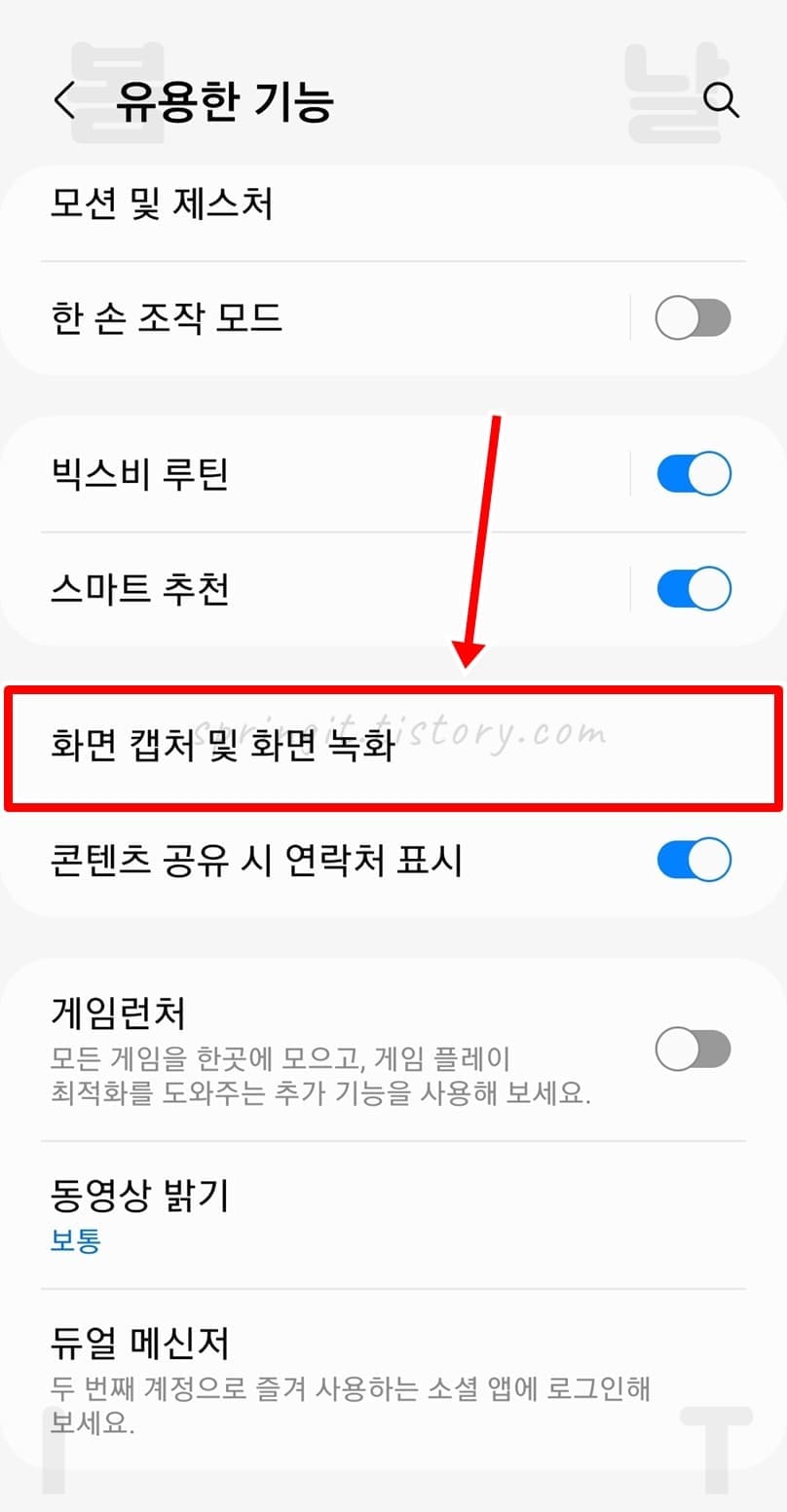 3. 화면 캡처 및 화면 녹화를 누릅니다.