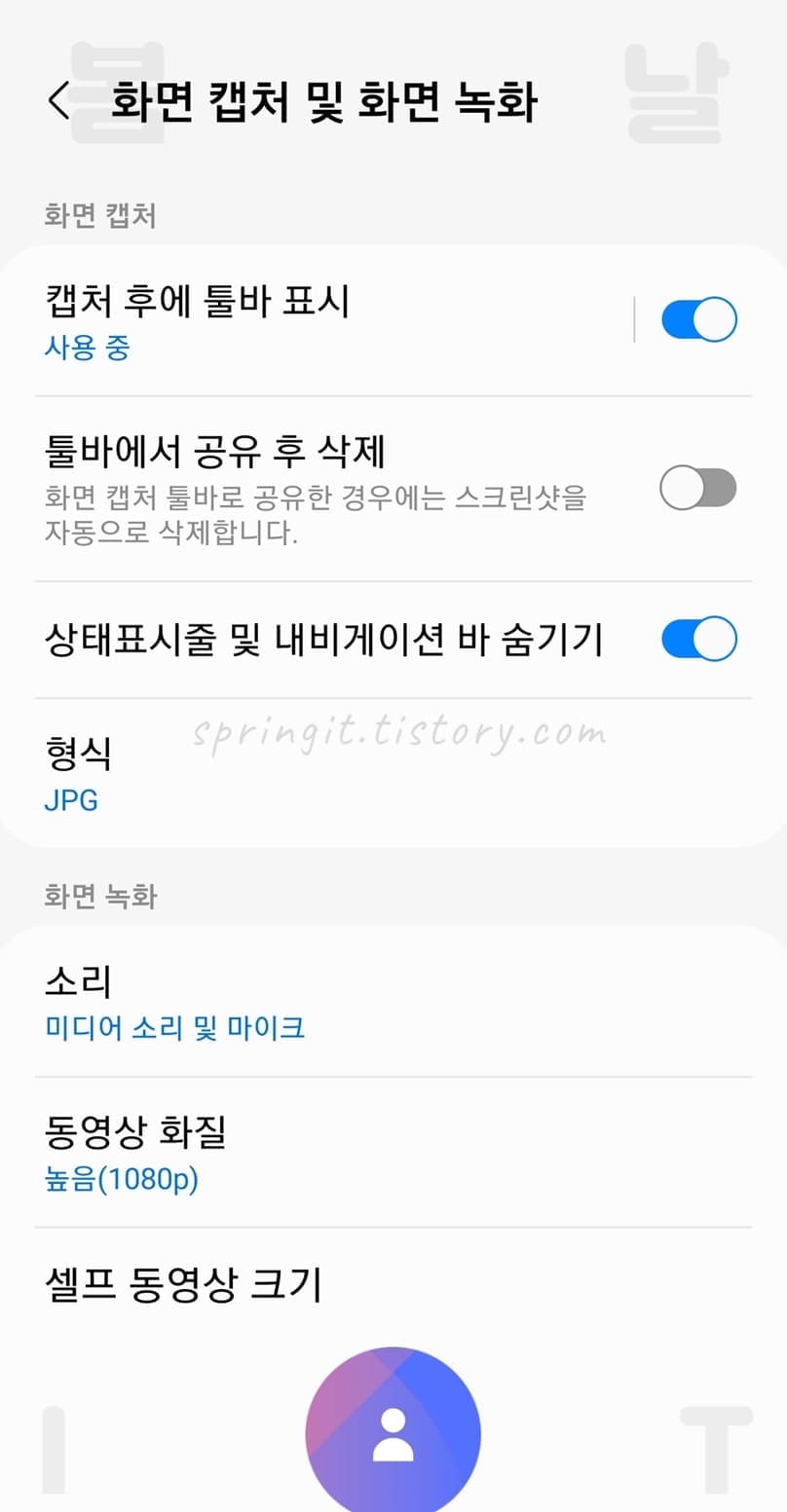 그래서 오늘 글에서는 갤럭시 스크린샷 캡쳐시 자동으로 상단바가 안보이게 숨기는 방법을 소개드리도록 하겠습니다. 한번만 설정해두면 앞으로 캡처시 상단바 및 네비바가 안보이며 가운데 사용화면만 보여지니 매우 편리합니다. 저의 지금 블로그인 Springit의 글 사진들 또한 이 기능을 이용해서 상단바, 하단바를 없앤 사진을 사용하고 있으니 어떻게 캡처사진이 보여지는지 쉽게 미리 확인할 수 있을 것입니다.