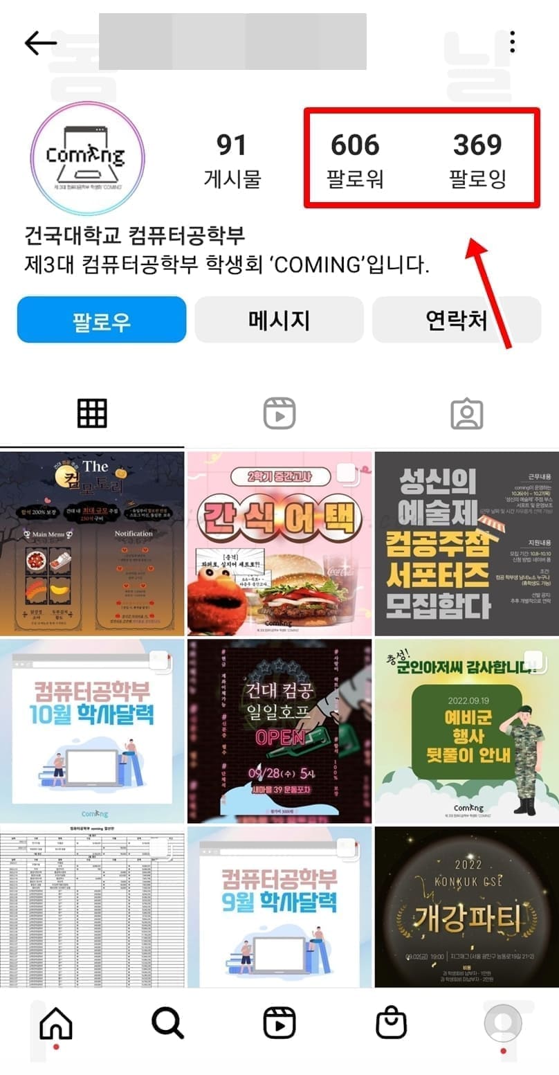 - 검색된 단체명 인스타그램 계정을 클릭하기
