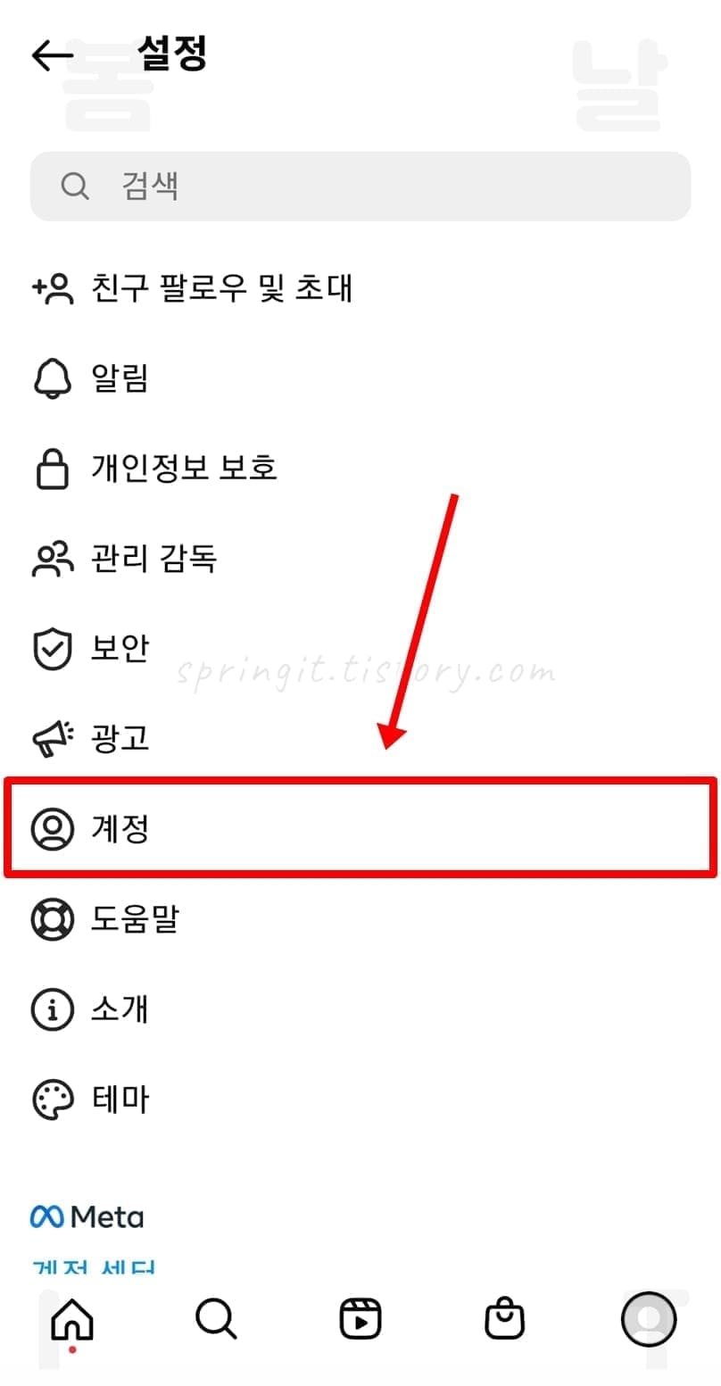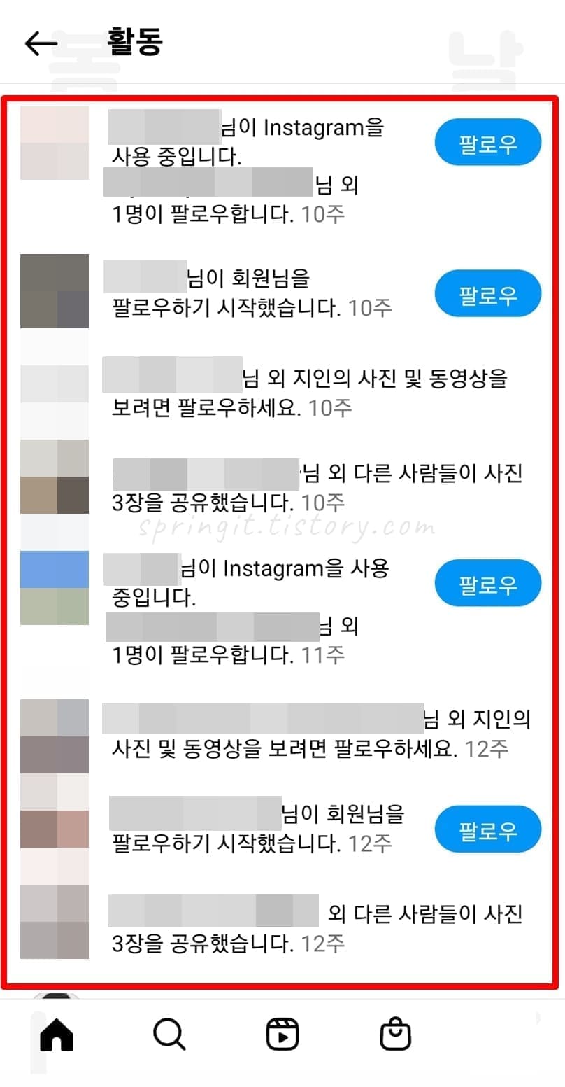 인스타그램 나의 활동 알림에서 친구 찾기