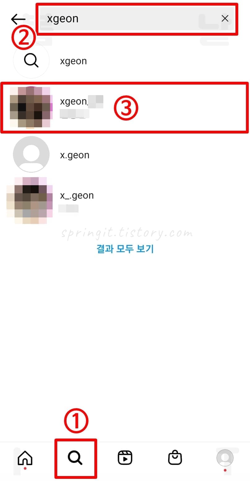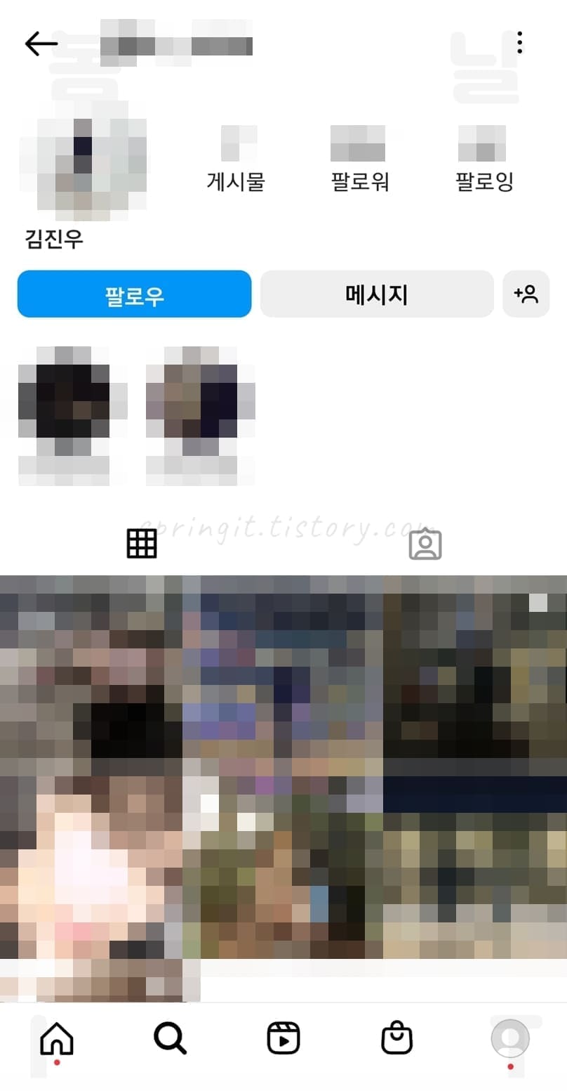 - 친구 인스타 아이디 입력해서 검색하기