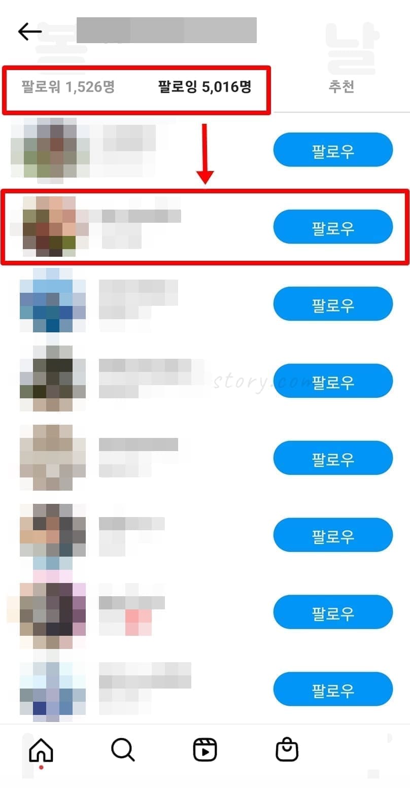 - 친구의 팔로워, 팔로잉을 클릭합니다.