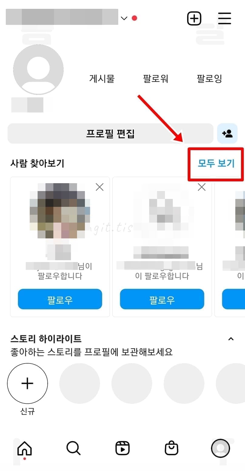 5. 내 프로필로 돌아와서 사람찾아보기 - 모두보기를 누릅니다.