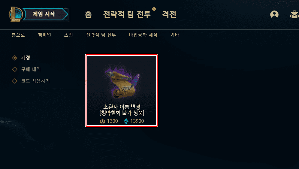 3. 소환사 이름 변경을 누릅니다.