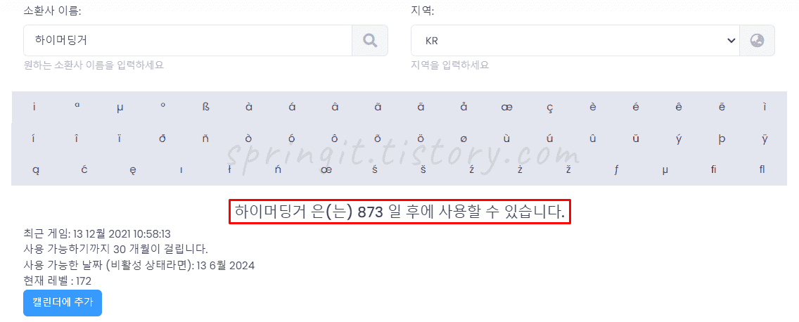 4. 검색한 닉네임의 사용가능한 날짜를 확인합니다.