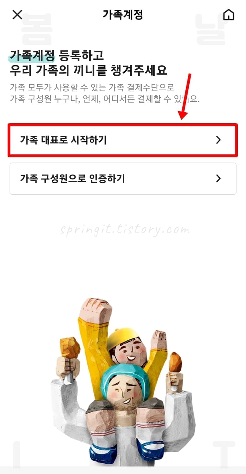 1. 가족 대표 계정에서 가족계정 화면을 실행해주세요.