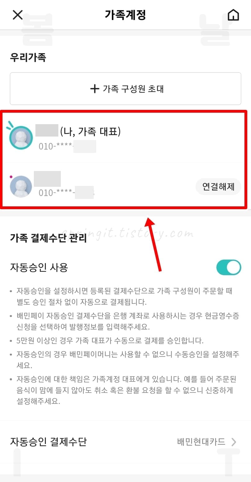 여기까지 배달의민족 가족계정 추가 및 결제 방법을 알아보았습니다. 정말 아쉽게도 할인수단은 가족 대표만 사용할 수 있기에 구성원의 결제는 조금 손해를 볼 수 있는 것도 사실이니 주의가 필요합니다. 참고로 실제 가족이 아니더라도 가족계정을 함께 이용할 수 있는데 예를 들어서 내가 대표, 나의 애인이나 친구를 구성원으로 두는 것도 가능합니다. 이번 글을 참고하셔서 이제 배달의민족을 더 편리하게 이용해보시길 바랍니다.
