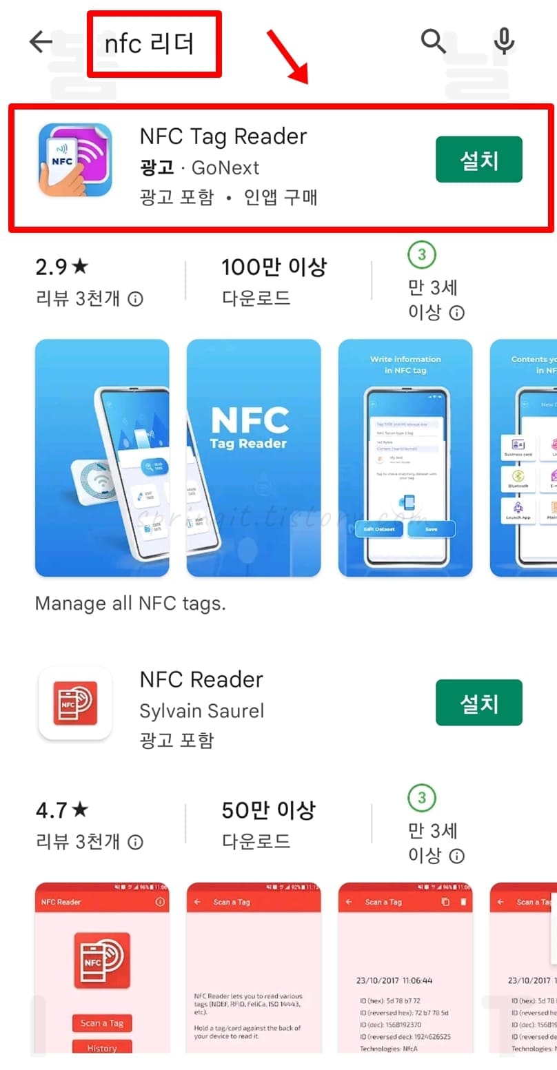 1. 구글 플레이 스토어에서 NFC 리더기 앱을 다운로드받습니다.