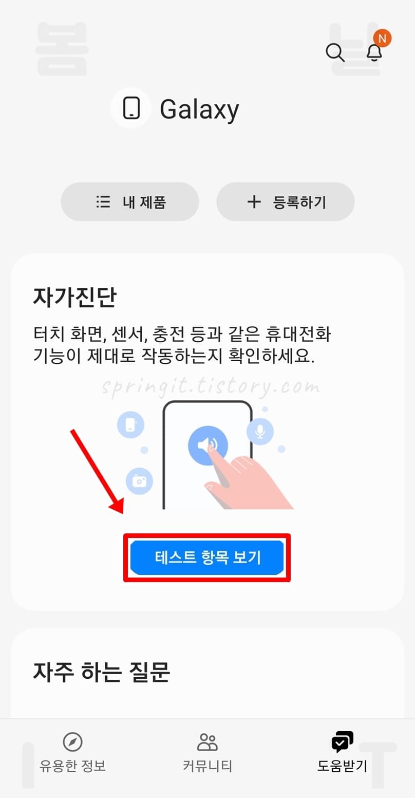 3. 자가진단 테스트 항목 보기를 클릭합니다.