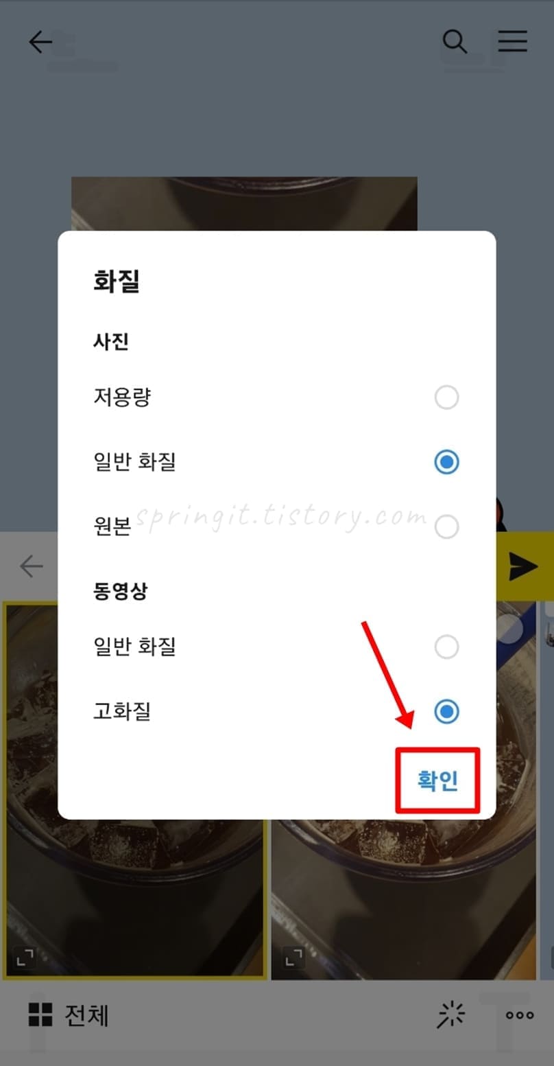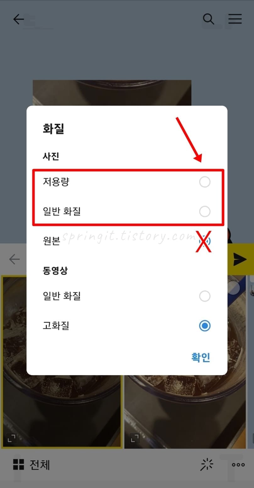 2. 사진 화질을 저용량이나 일반화질을 선택합니다.
