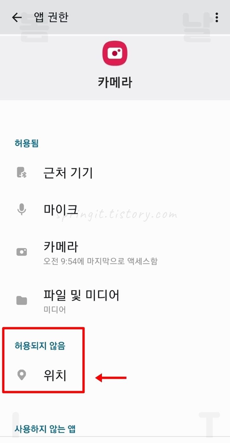 9. 카메라 앱이 위치 권한을 사용할 수 없게 됩니다.