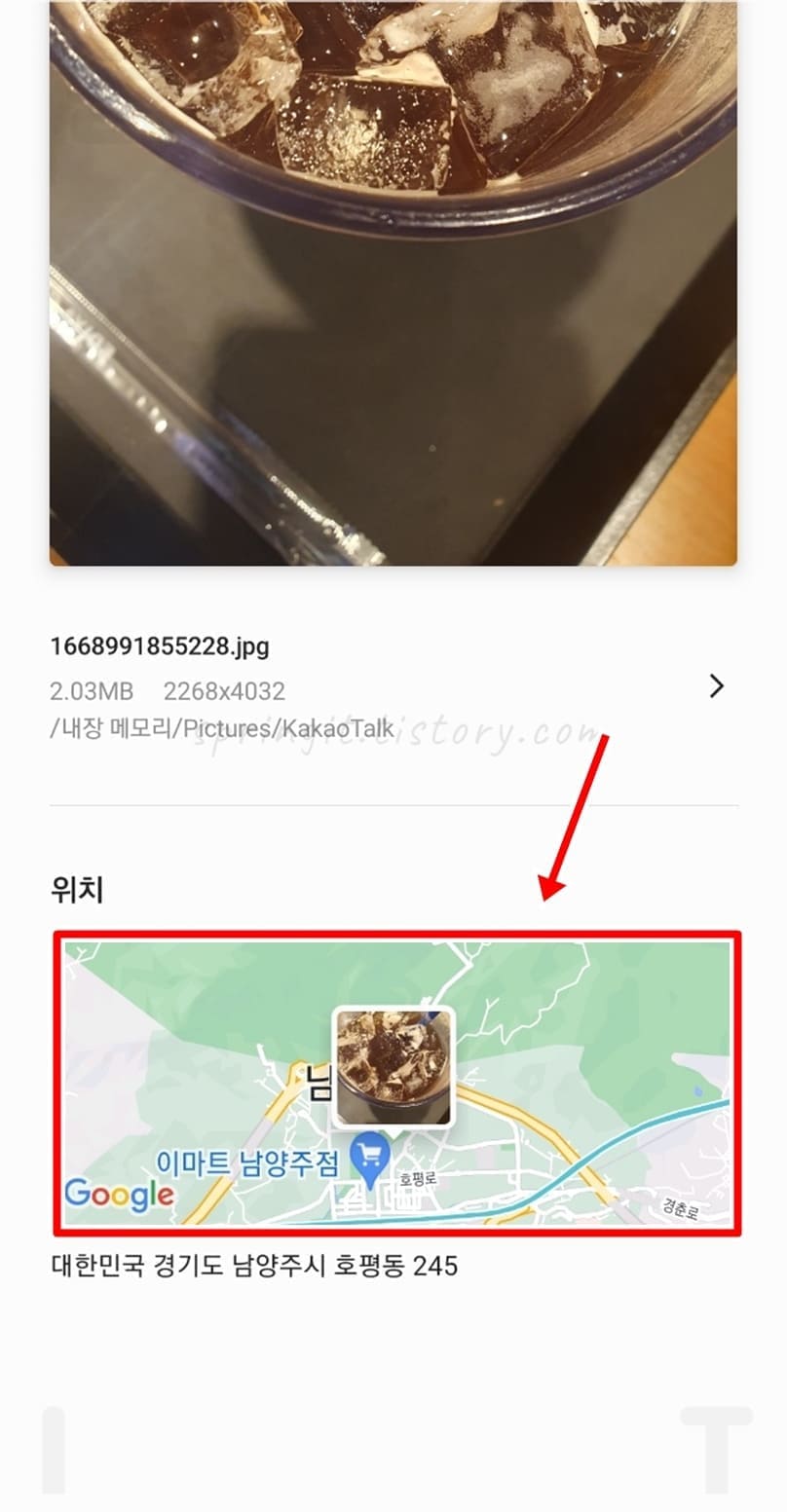 3. 사진 아래 위치 탭에서 지도상 사진 위치정보가 표시됩니다.