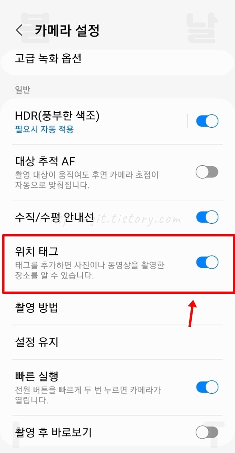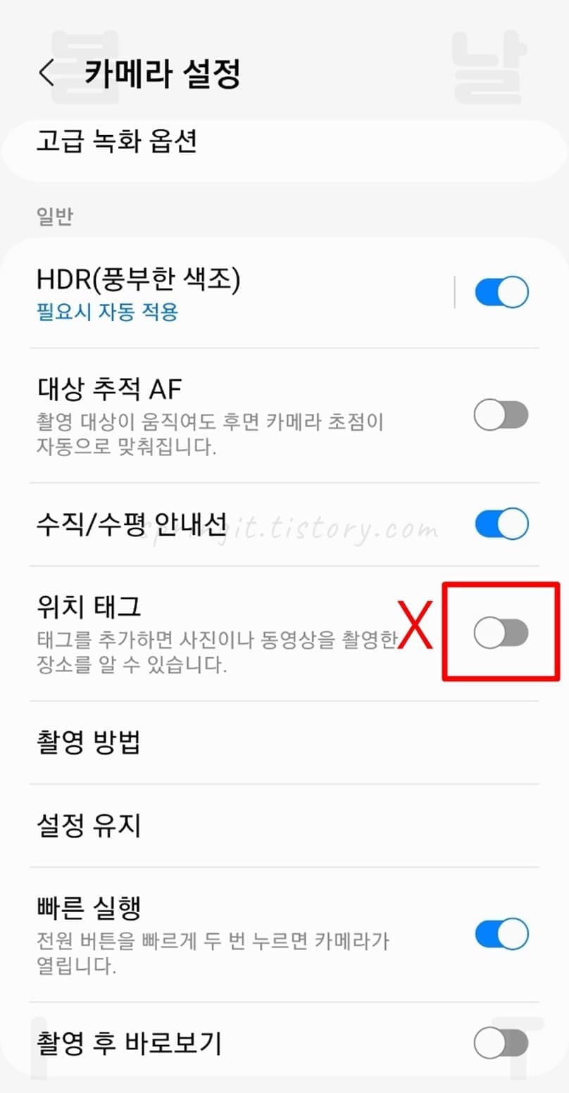 카메라 촬영시 사진 위치정보 해제하는 방법
