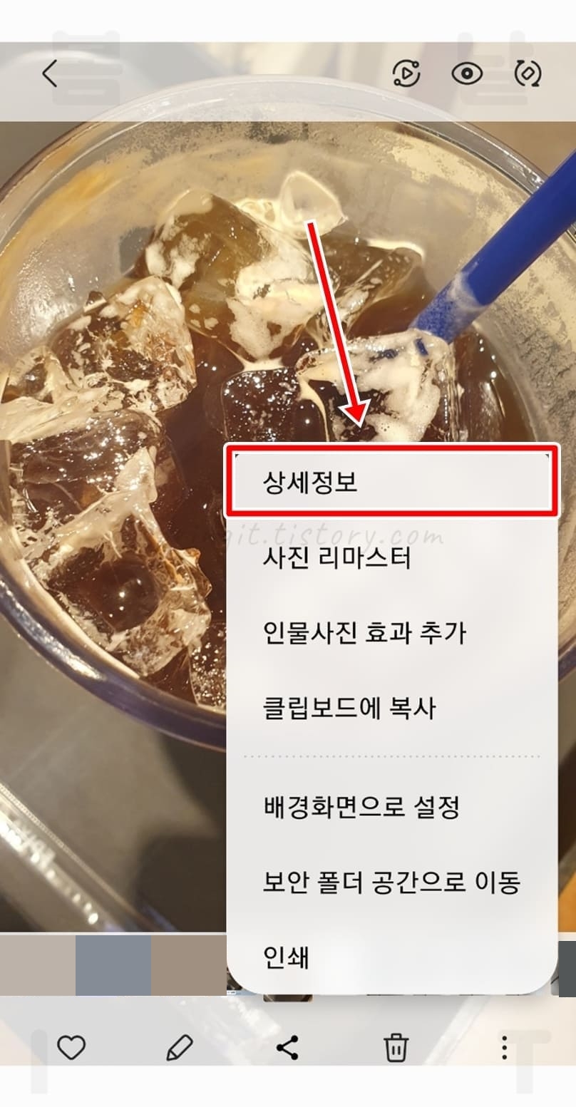1. 갤러리에서 사진의 더보기 버튼을 누릅니다.