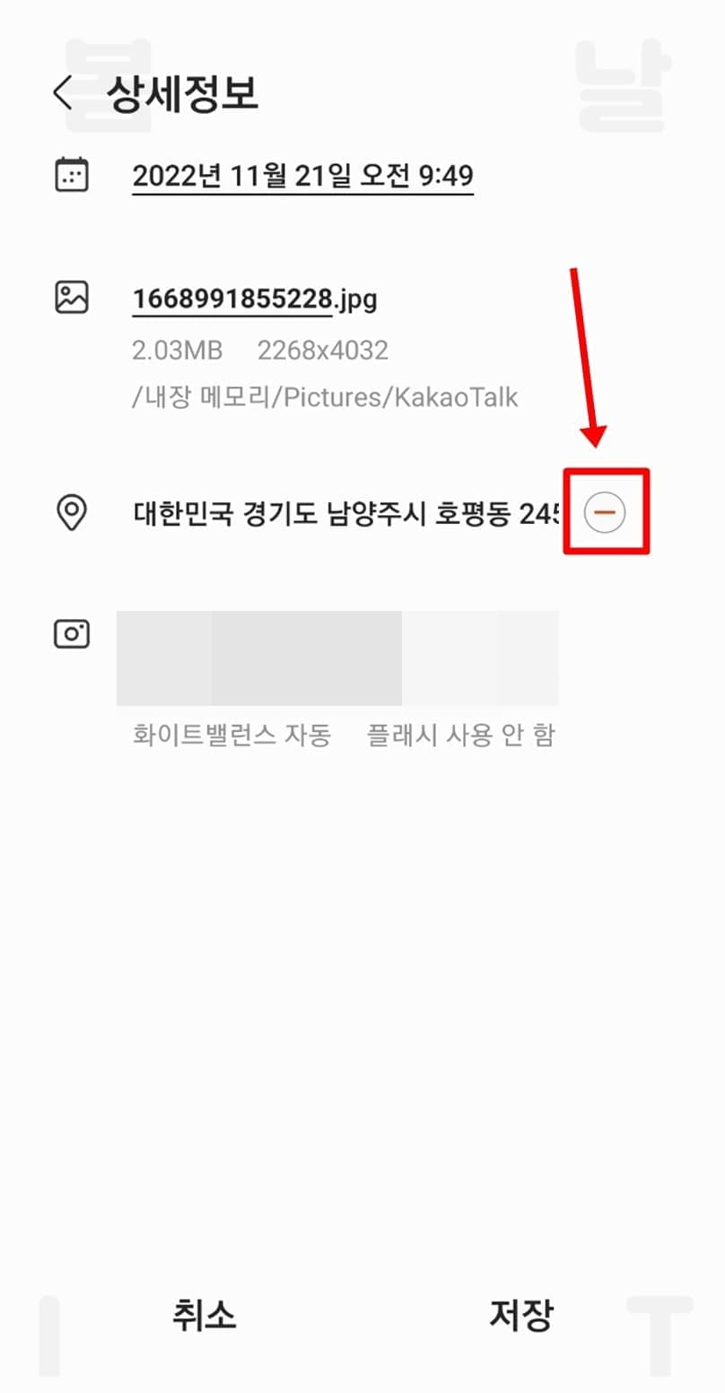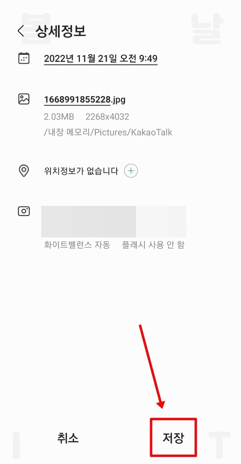 5. 사진 위치정보가 삭제되면 저장을 클릭합니다.