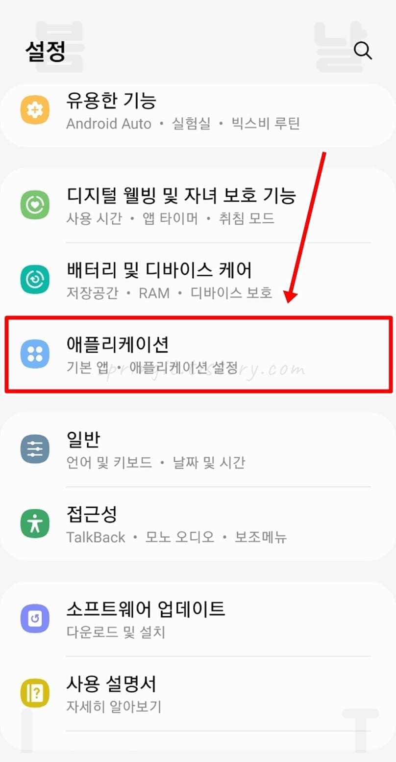 4. 애플리케이션을 클릭합니다.