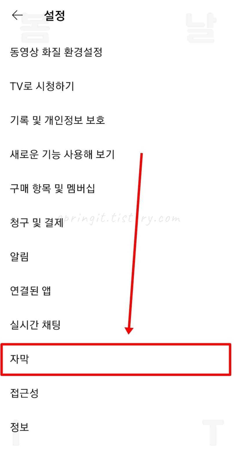 7. 자막을 누릅니다.