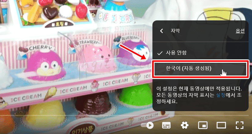 8. 자동자막에서 한국어를 선택해주시면 됩니다.