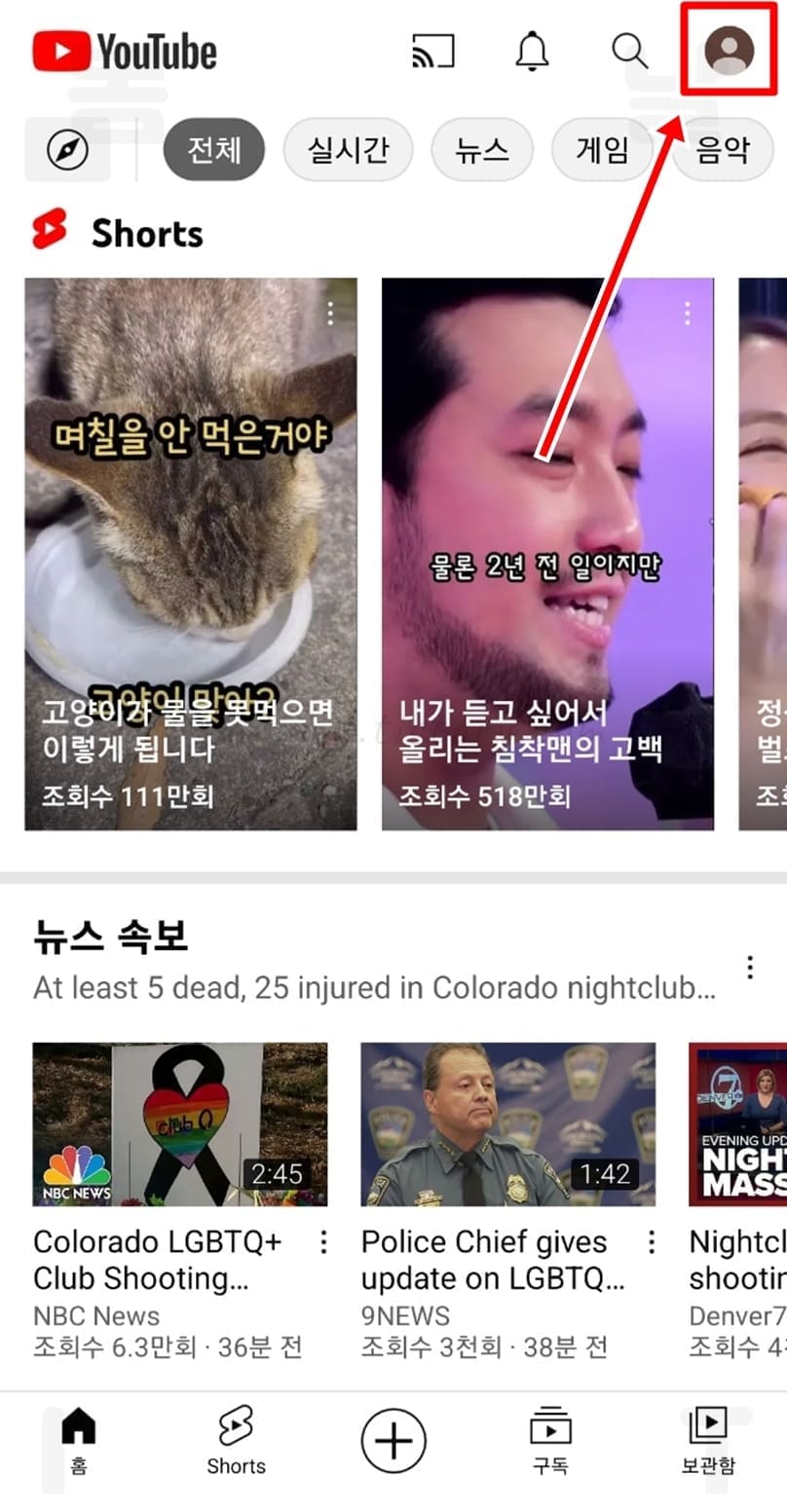 2. 로그인된 내 유튜브 계정 프로필을 클릭합니다.
