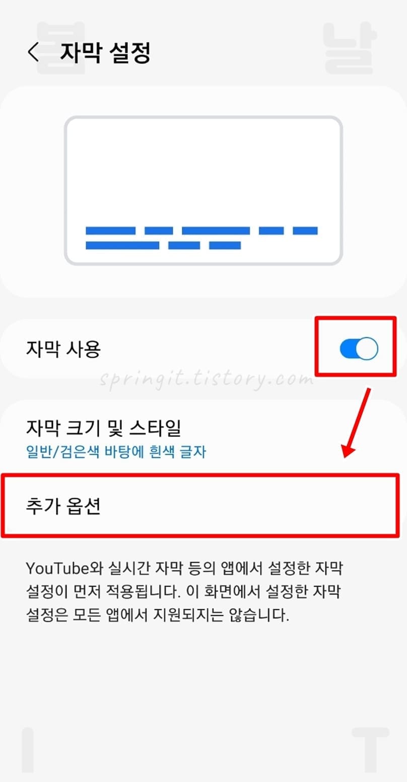 5. 자막 사용을 ON으로 활성화합니다.