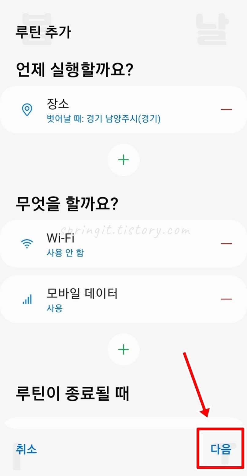 이제 특정 장소를 벗어날 때 와이파이가 자동으로 꺼질 수 있도록 루틴을 만들어보겠습니다.
