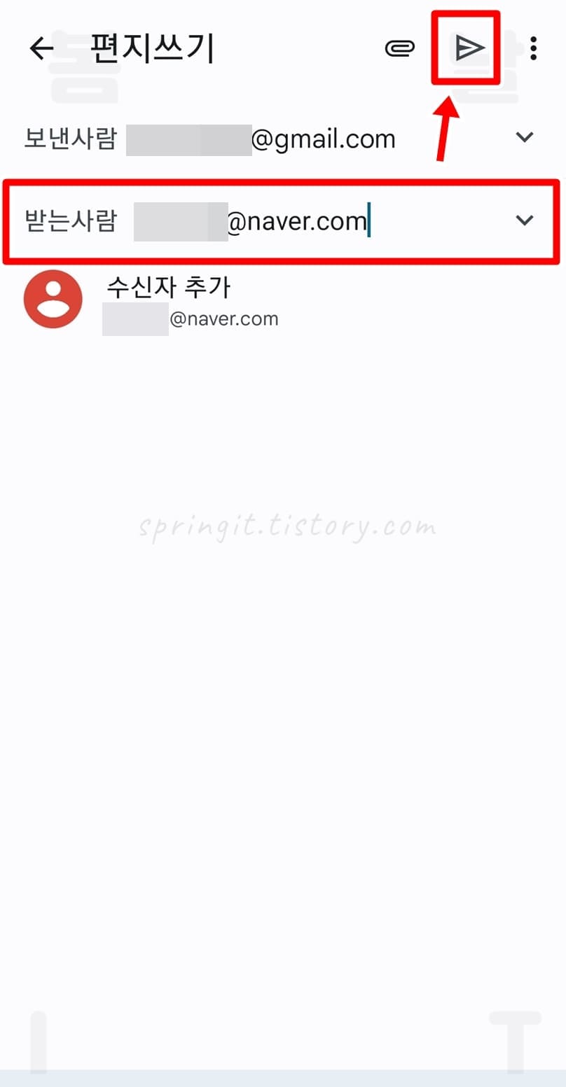 9. 받는사람 메일주소를 입력합니다.