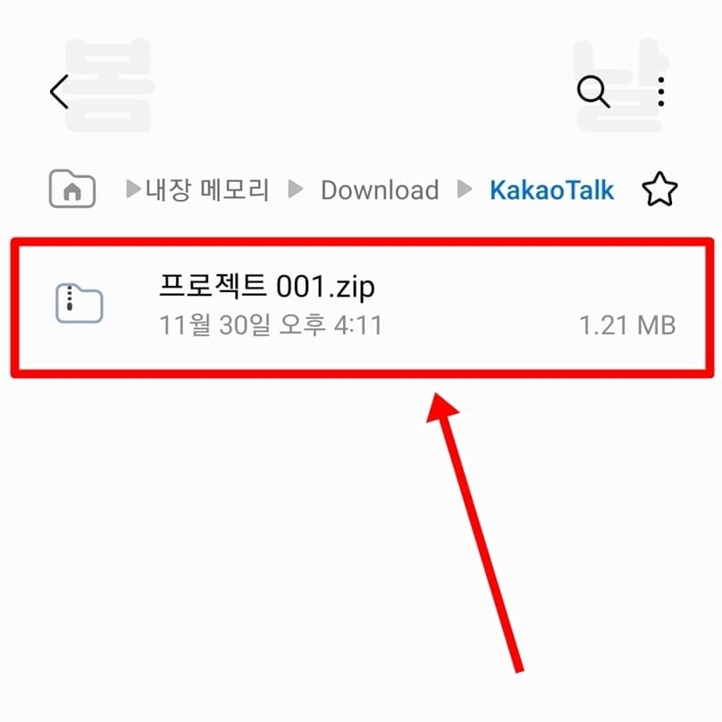 5. 방금 전 다운로드 받은 카톡 파일을 확인합니다.