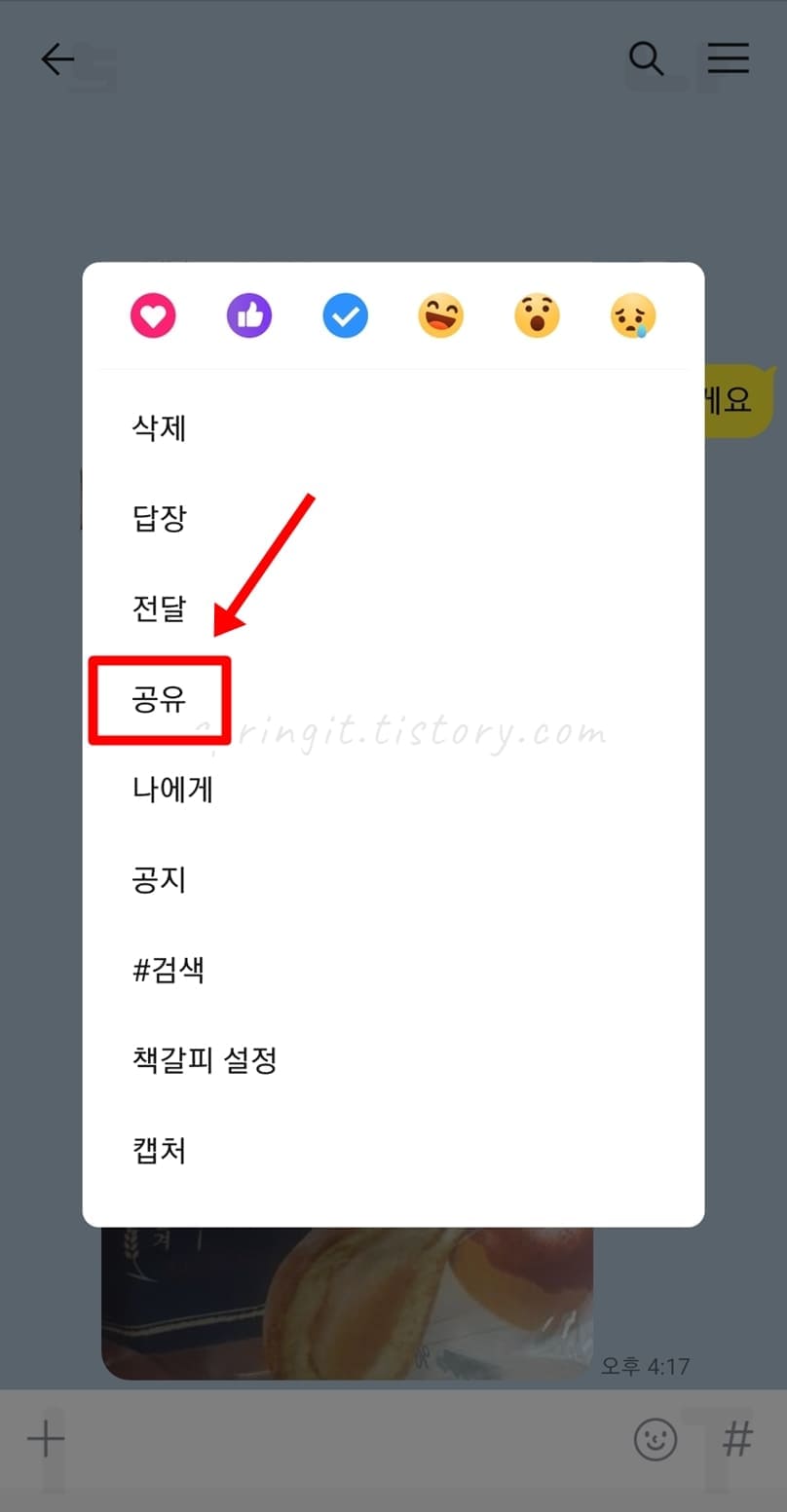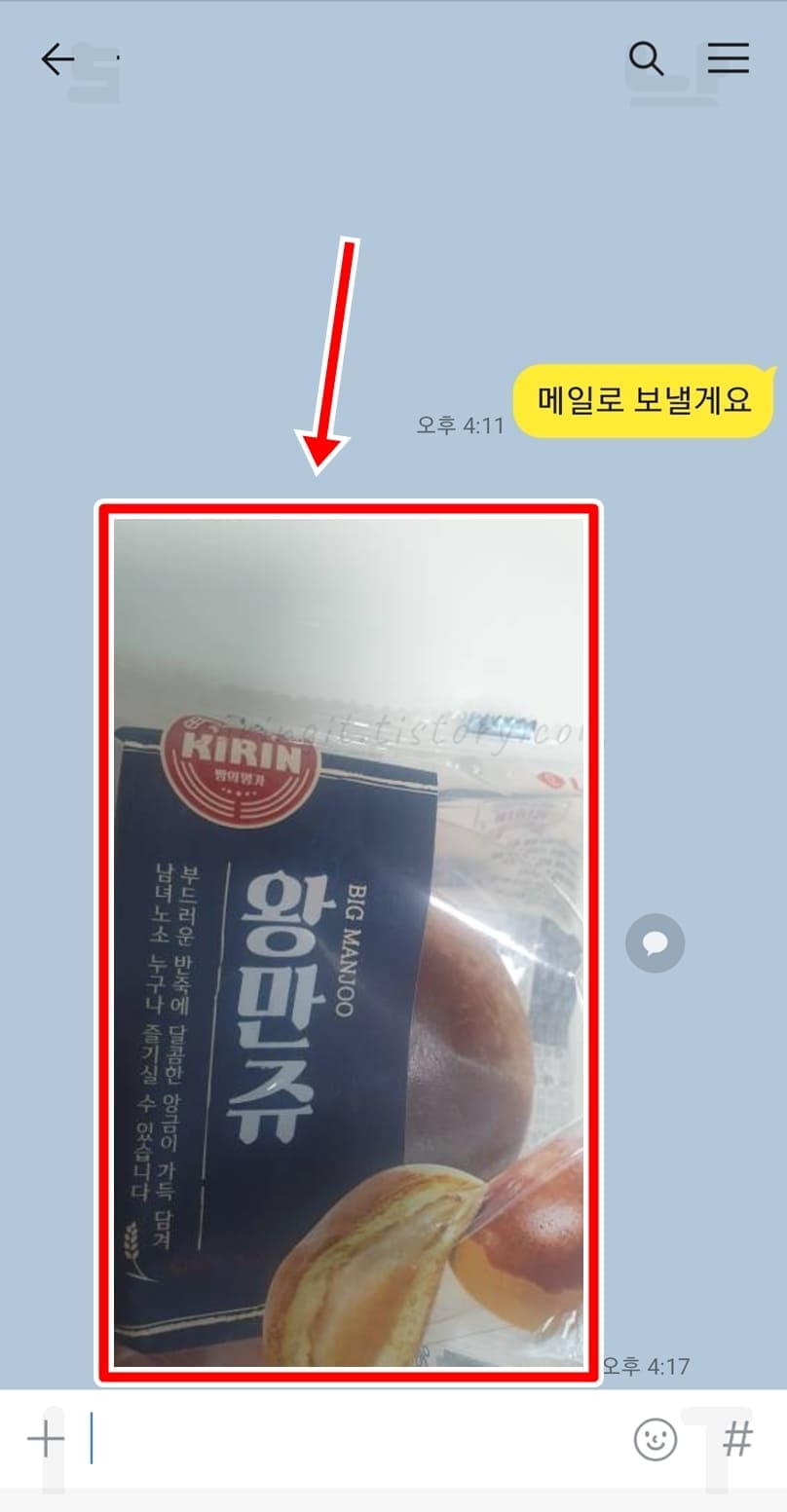 1. 카톡 채팅방에서 사진을 길게 누릅니다.