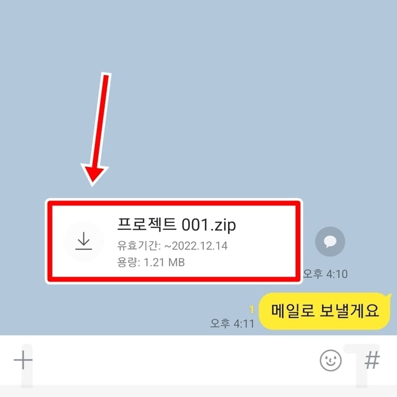 1. 카톡 채팅방에서 받은 파일을 눌러서 다운로드 받습니다.