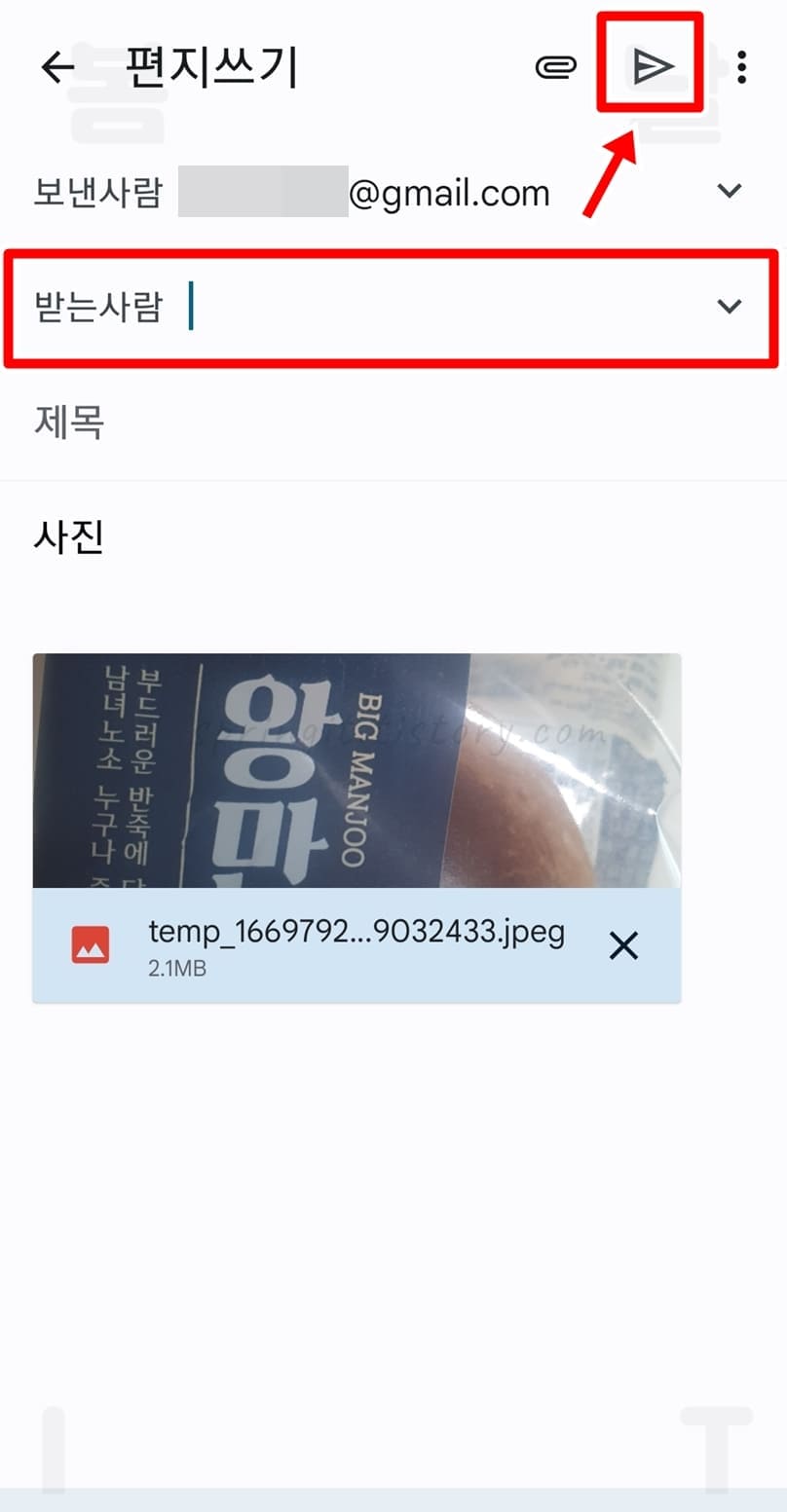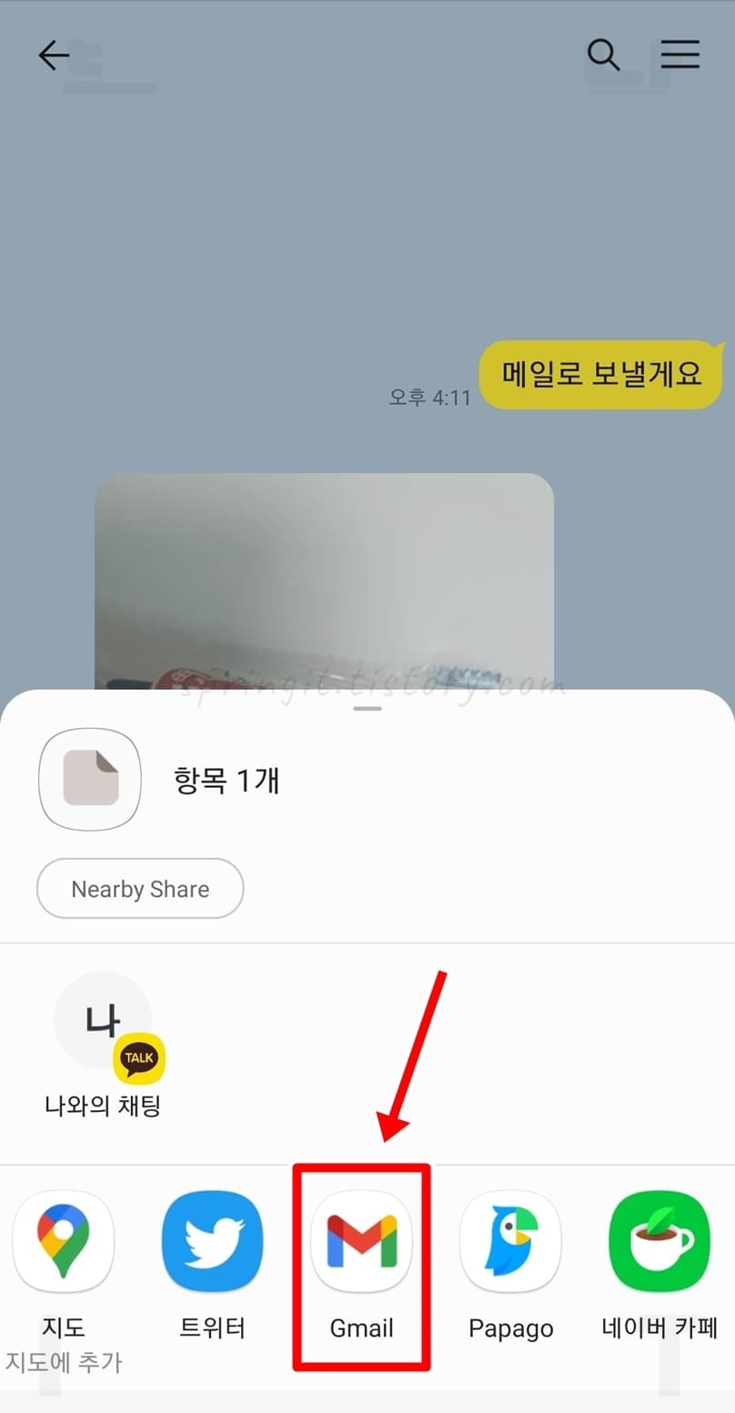 카톡으로 받은 사진을 메일로 보내는 방법