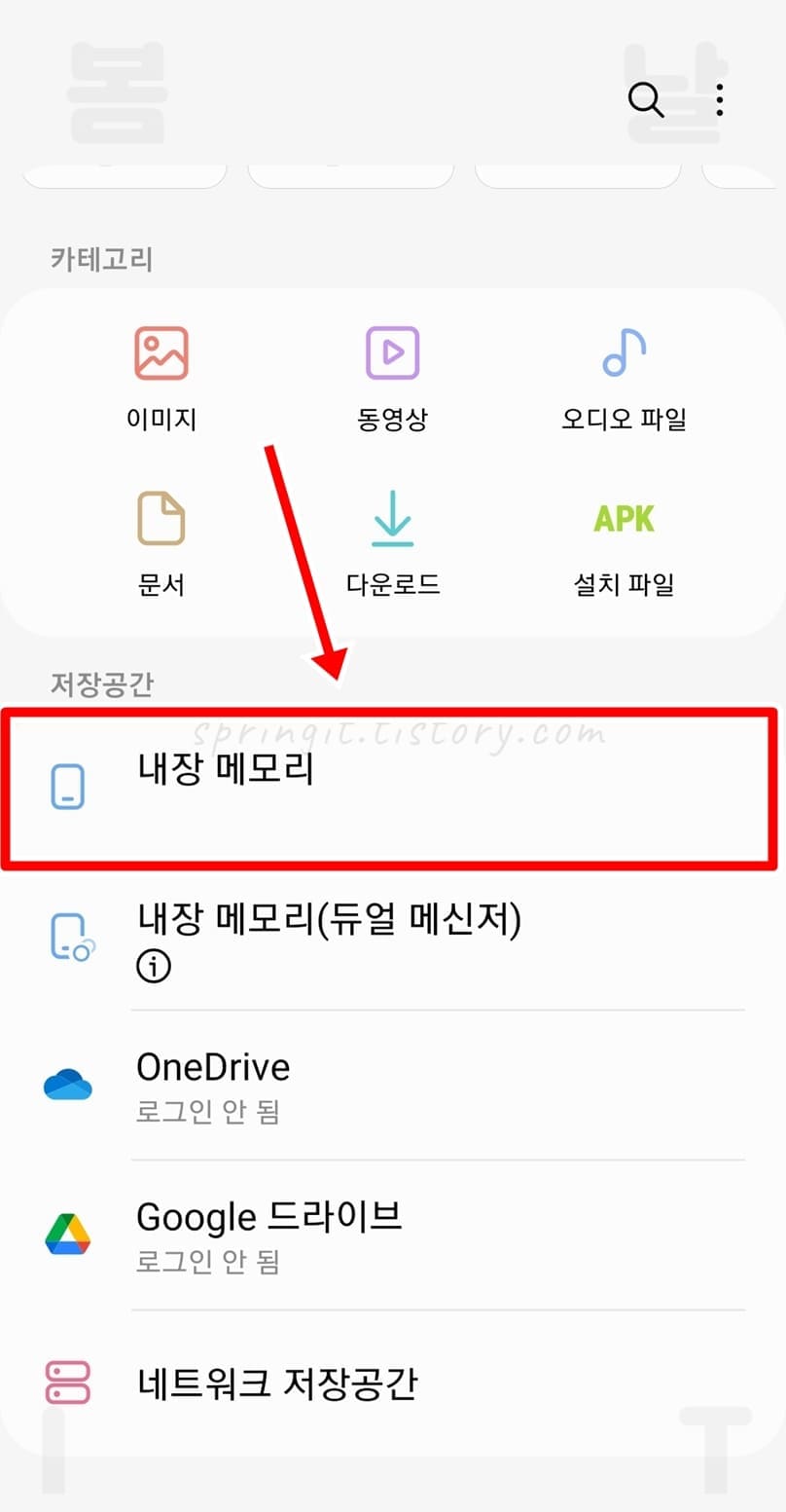 3. 내장 메모리를 누릅니다.