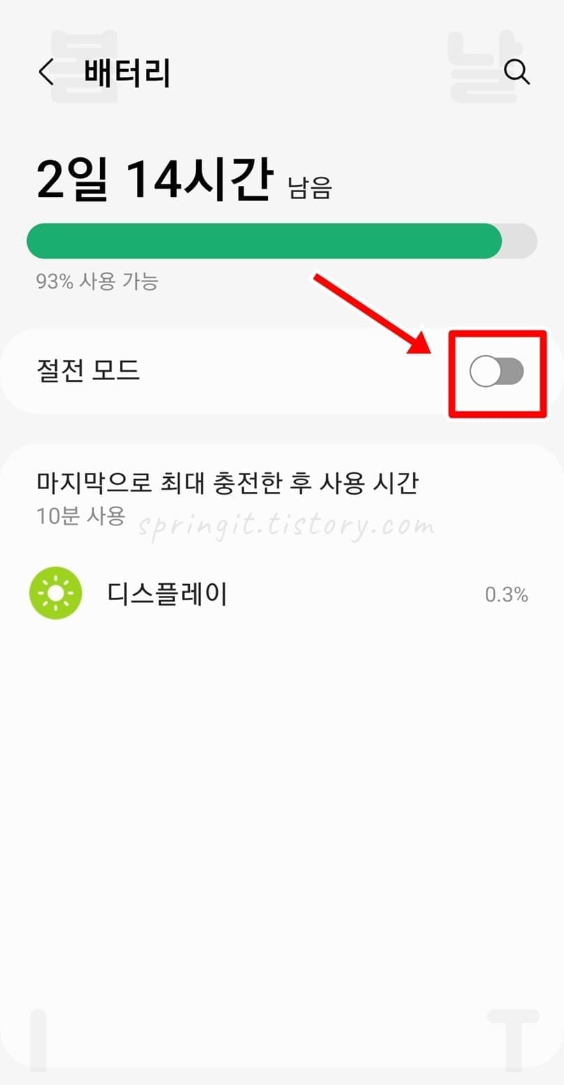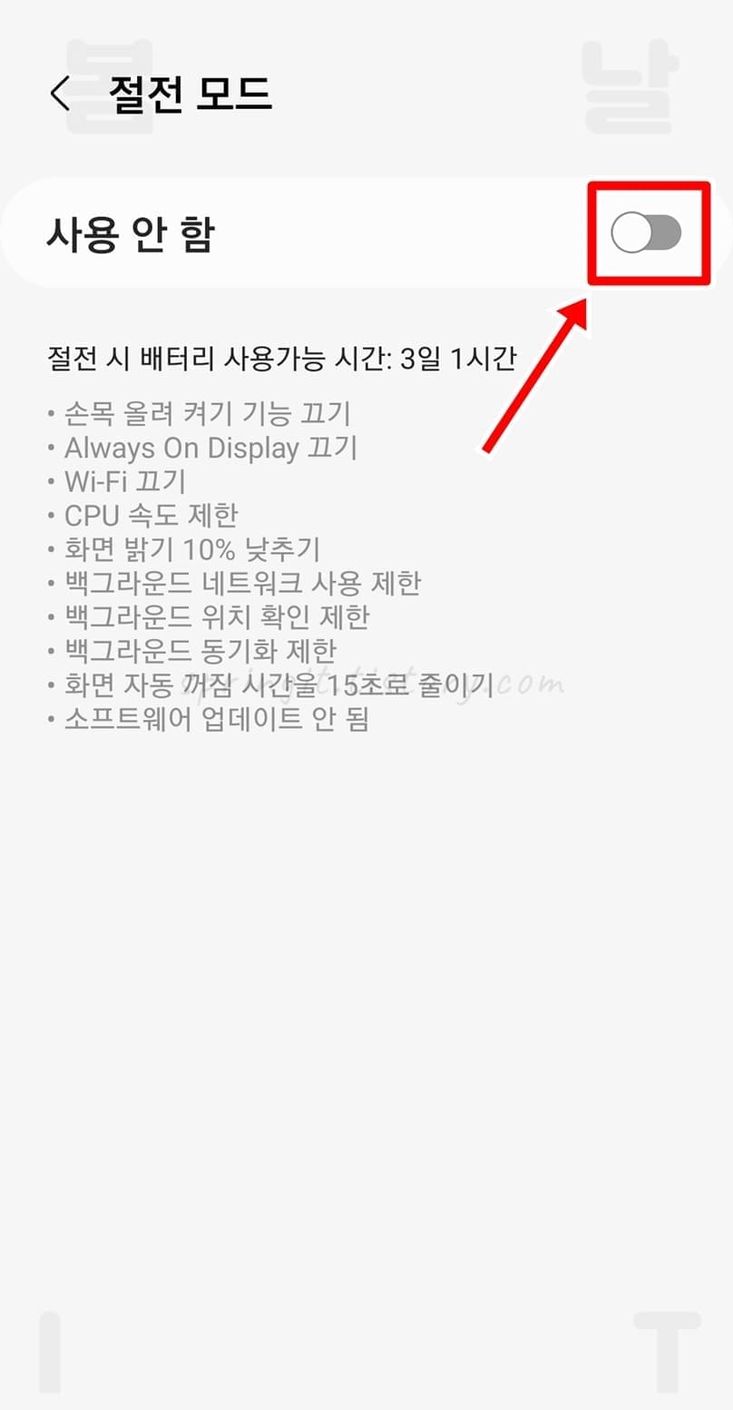 3. 절전모드를 누른 후 기능을 활성화합니다.