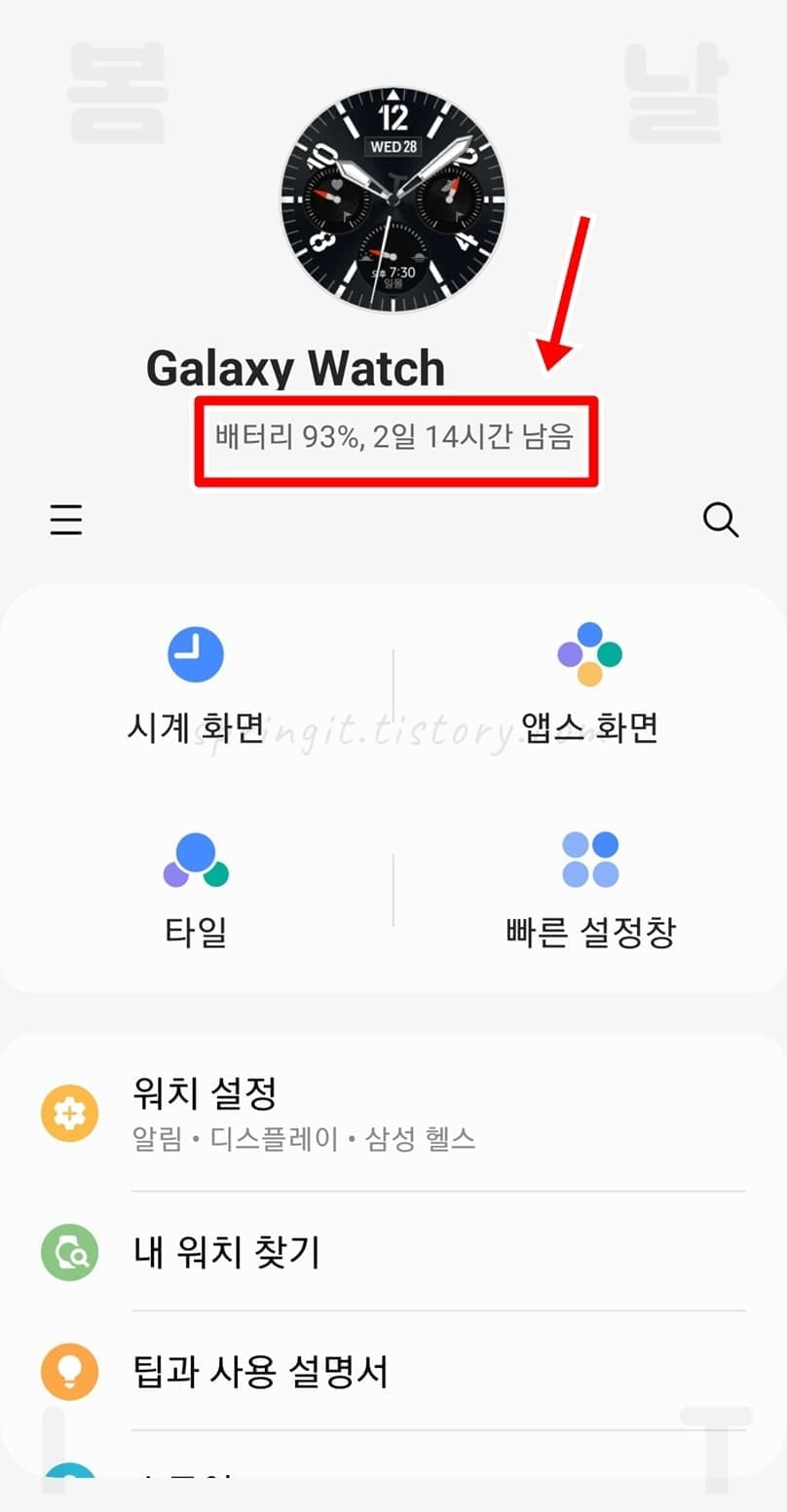 갤럭시 워치 배터리 잔여량과 남은 시간 확인 방법