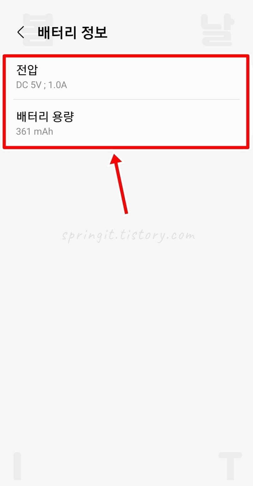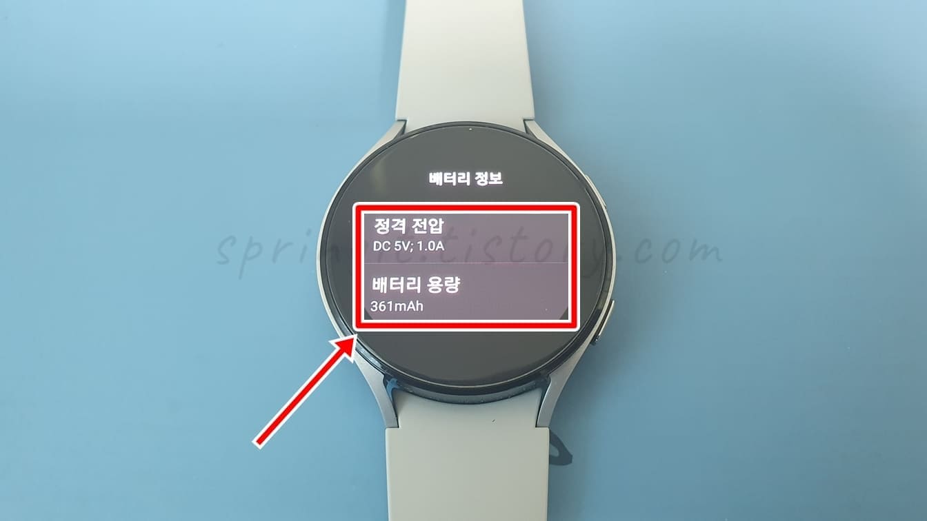 4. 갤럭시워치의 배터리 전압과 배터리 용량을 확인할 수 있습니다.
