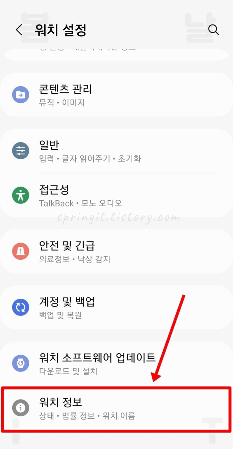 1. 갤럭시워치 설정에서 워치 정보를 누릅니다.