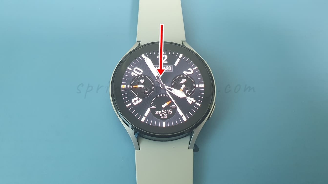 1. 갤럭시워치 홈화면을 위에서 아래 방향으로 내립니다.
