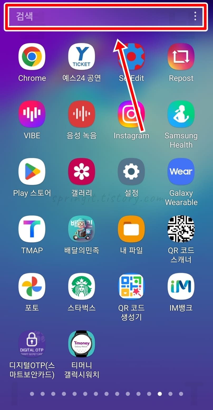 1. 앱스화면 상단 검색창을 눌러줍니다.