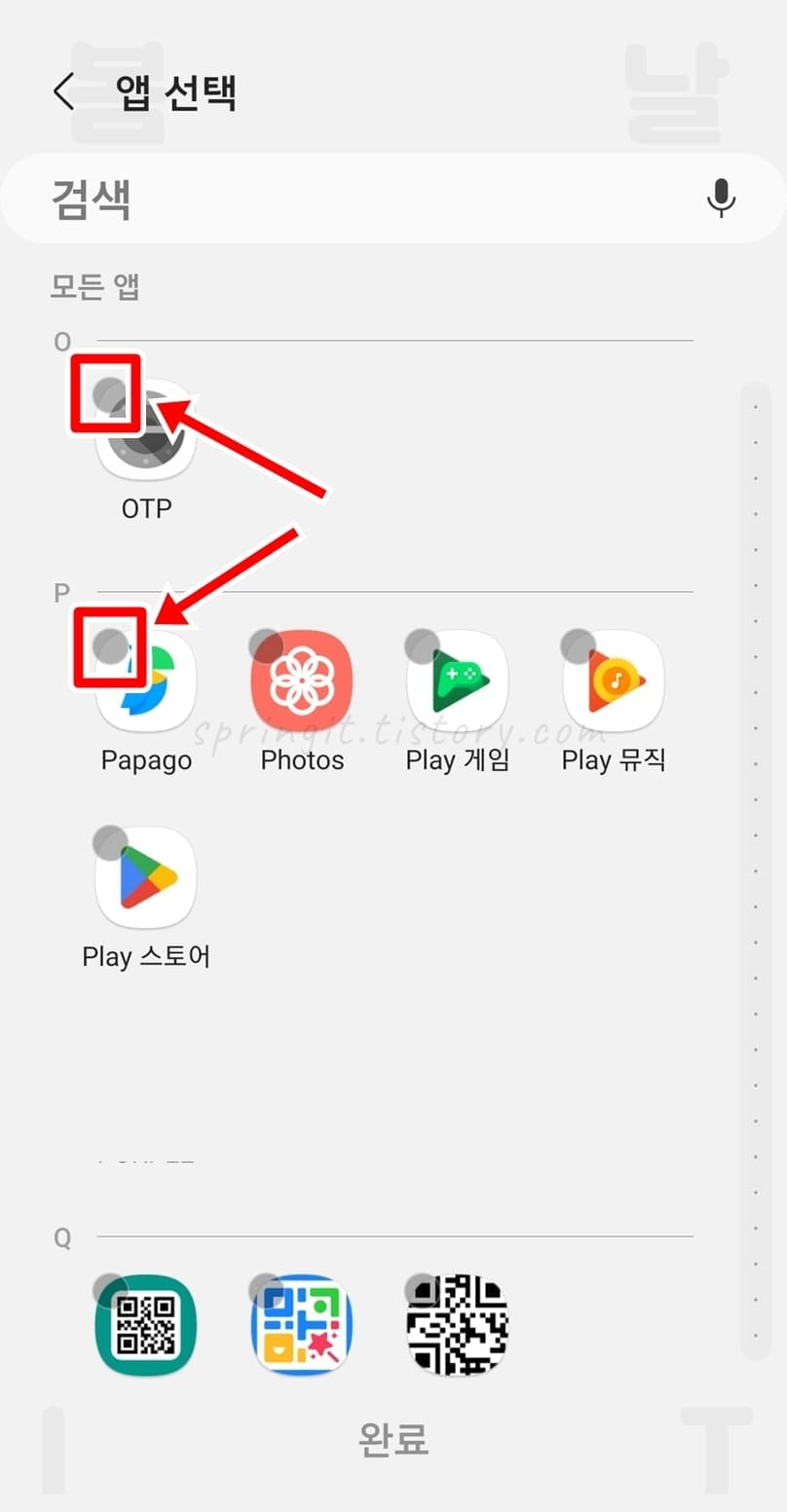 4. 현재 설치된 앱 목록에서 숨기고 싶은 앱을 모두 체크합니다.