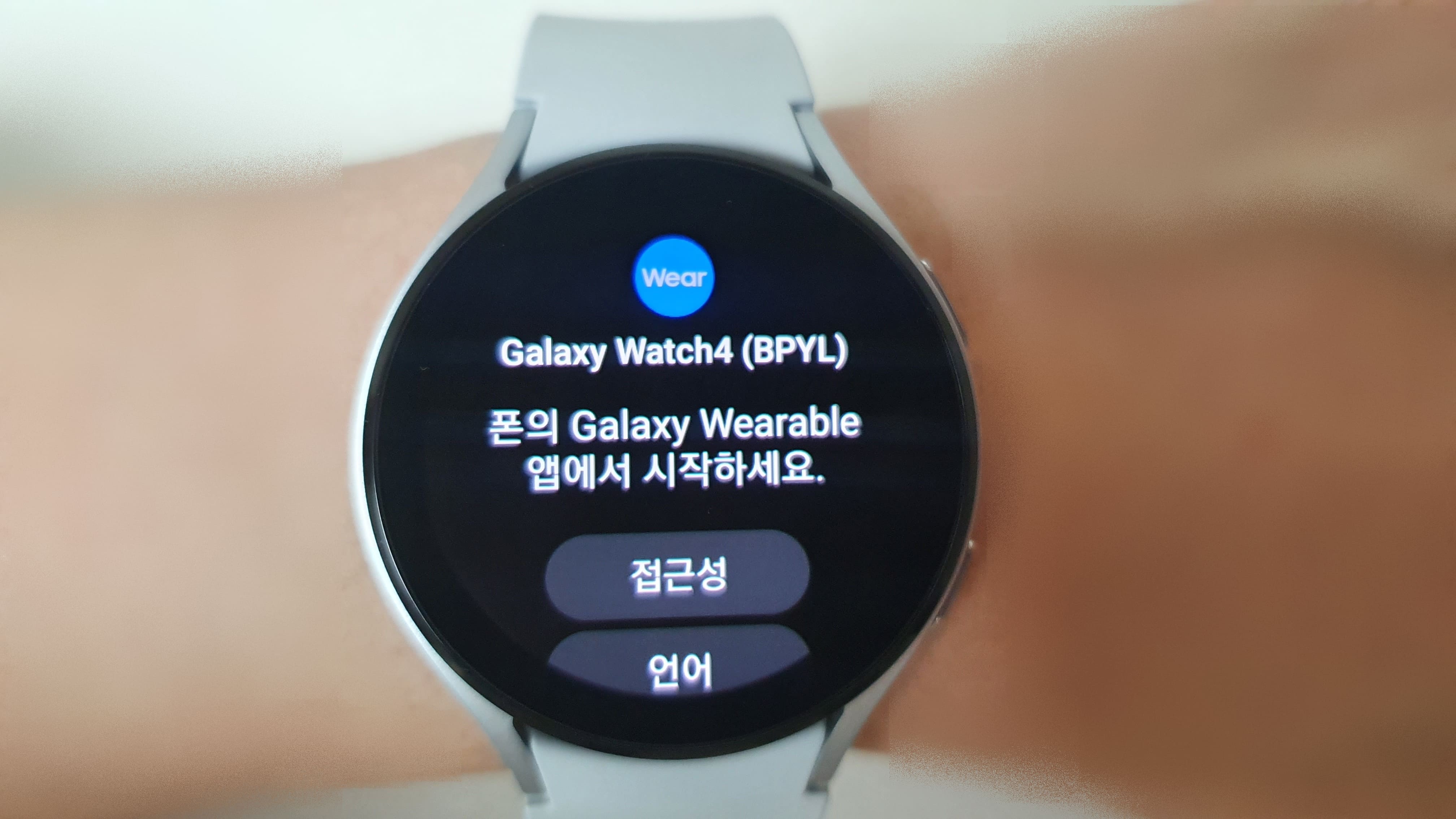 "폰의 Galaxy Wearable 앱에서 시작하세요."가 보이면서 아래에서 접근성, 언어등을 설정할 수 있는데 모두 한국 기준으로 자동 설정되어 있으니 설정을 건드릴 필요가 없습니다. 이제 갤럭시 워치에서 해줄 작업은 모두 끝이 났습니다. 바로 스마트폰으로 이동하시면 됩니다.